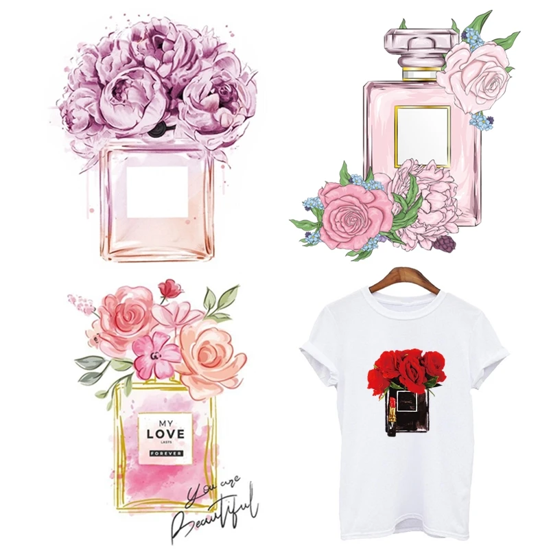Модные термонаклейки для парфюма с цветком розы, термоклейкие термонаклейки для одежды, футболок, сделай сам, нашивка с рисунком губной помады