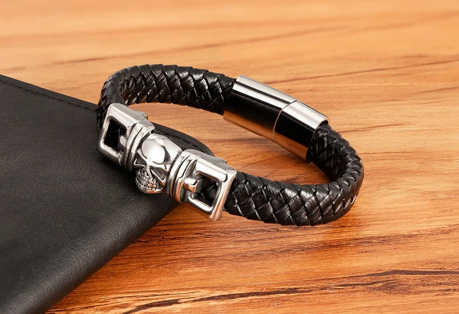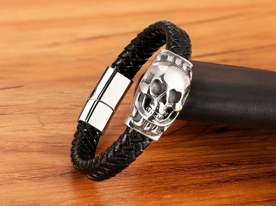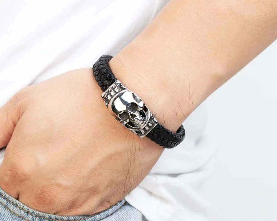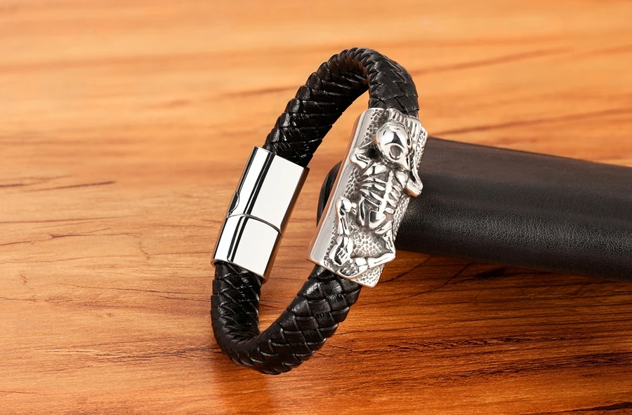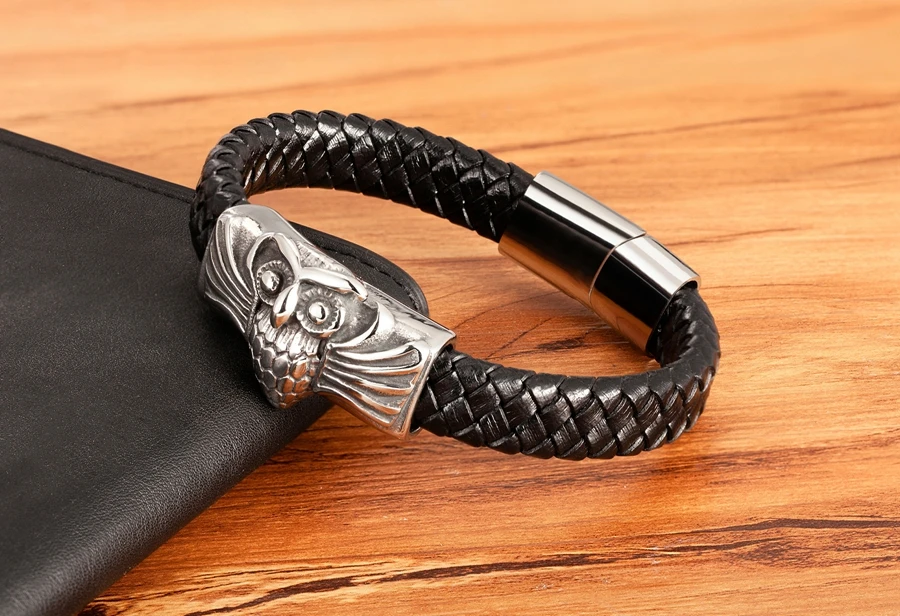 NameLarge Accessories Animal Design Stainless Steel Men's Leather Bracelet