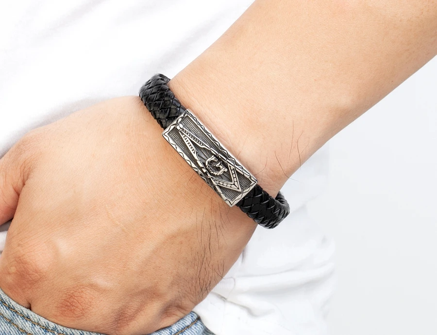 Многослойная кожаная комбинация, маленькие аксессуары, мужские брас...