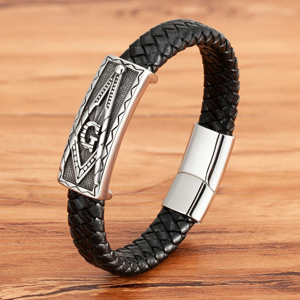Мужской кожаный браслет, геометрический браслет из нержавеющей стал...