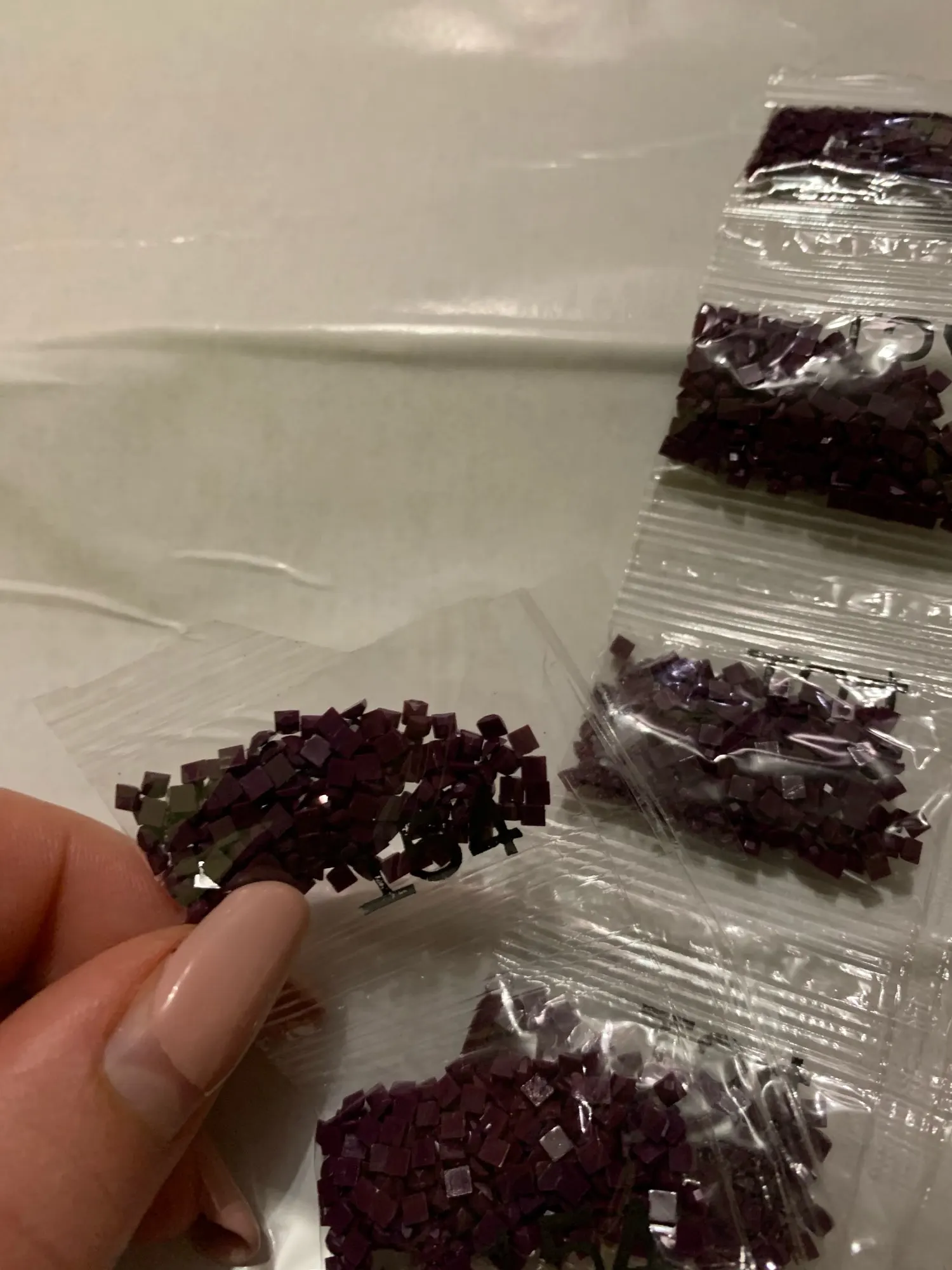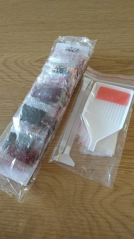 Посылка пришла очень быстро, но качество картины не слишком хорошее. Холст сам по себе не так плохо, было несколько рек, но в противном случае, довольно хорошо. Моя самая большая проблема-это сами сверла, там много мусора и дрелей не то же самое, что избавило от удовольствия от картины. Я еще не закончила картину, но у меня может не быть достаточно сверл для 2 цветов, я надеюсь, что это не так. В одном цвете 3 сумки отсутствуют, а в другом цвете 1 сумка отсутствует.