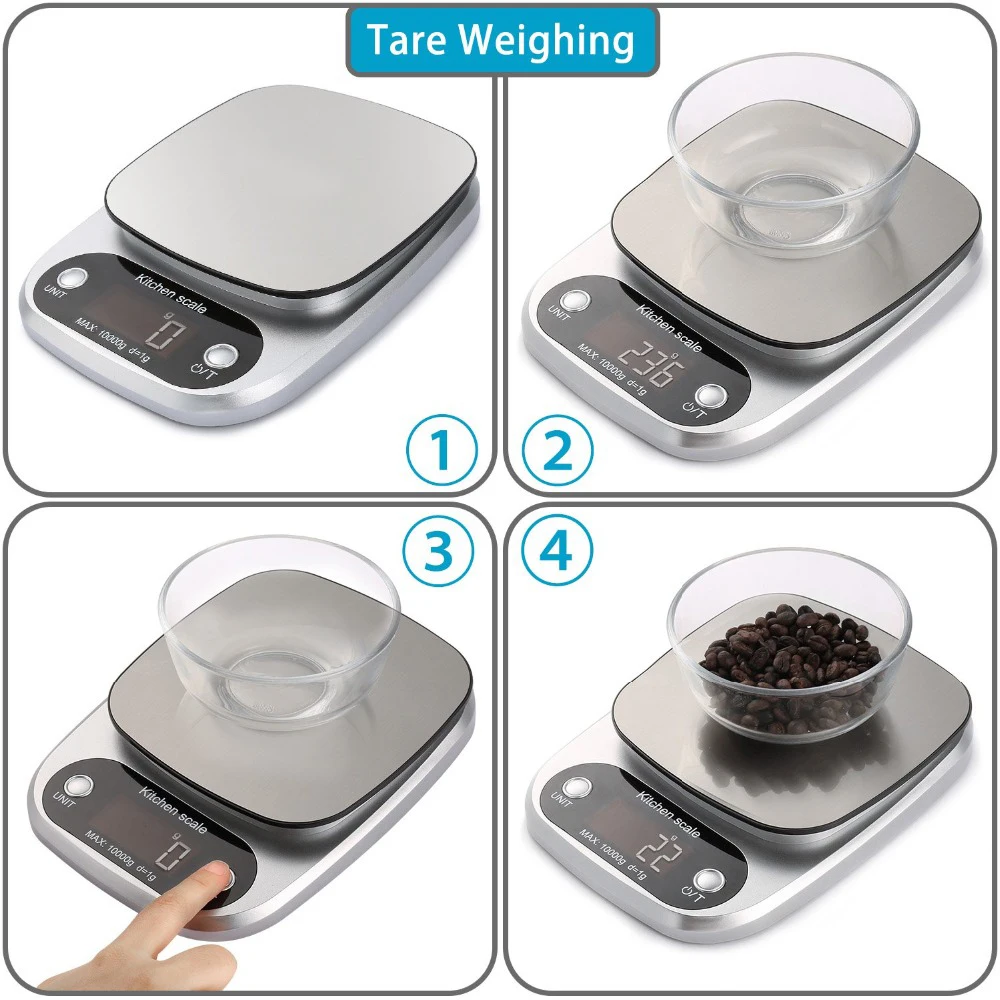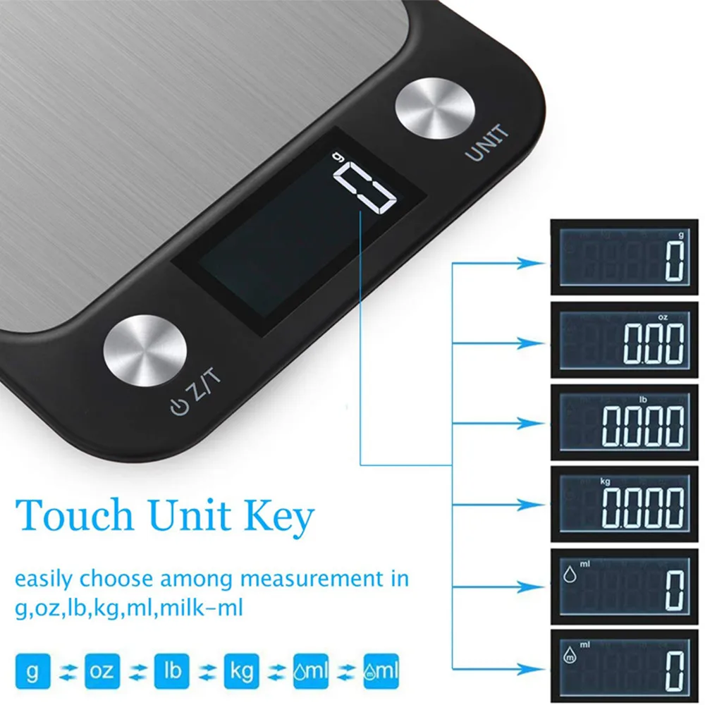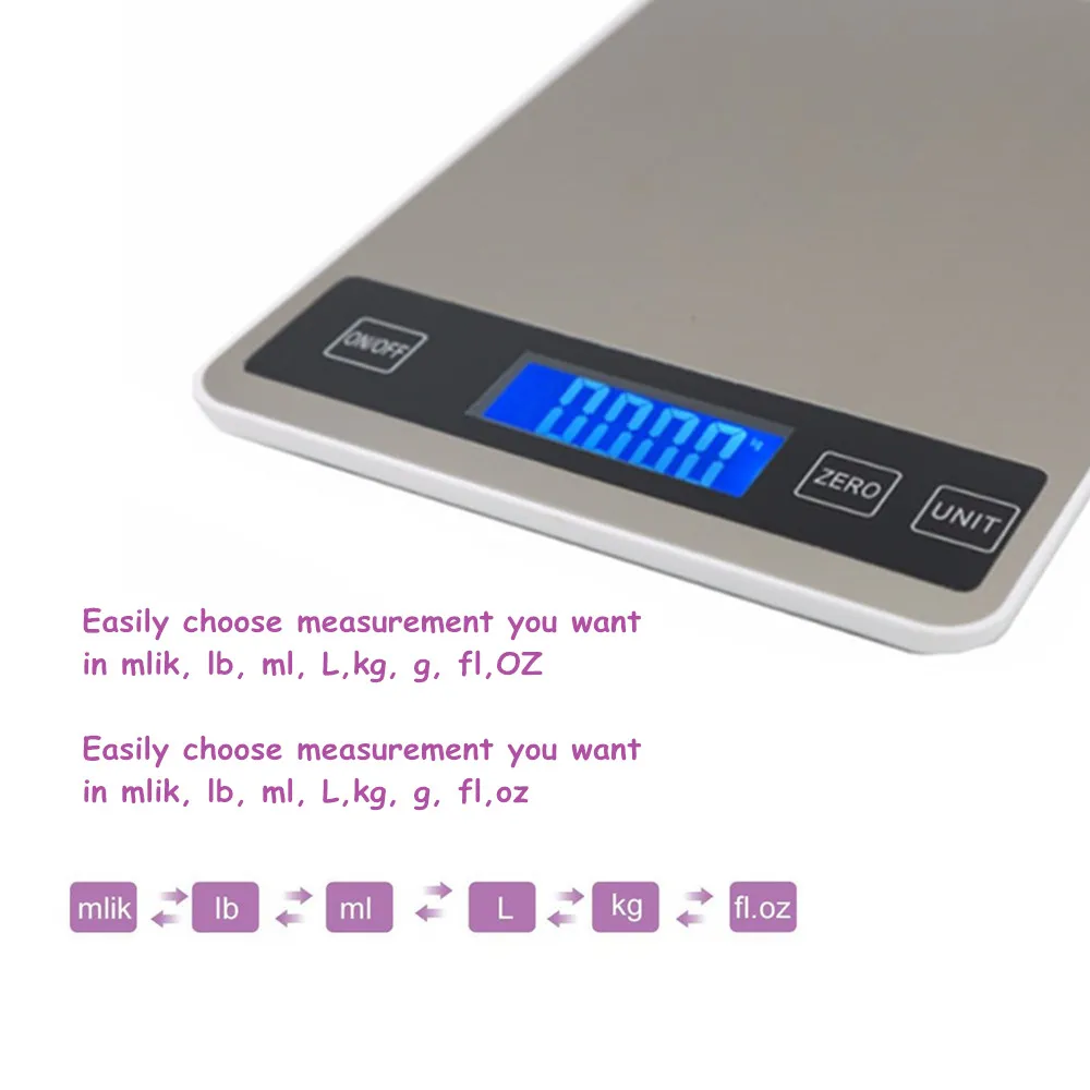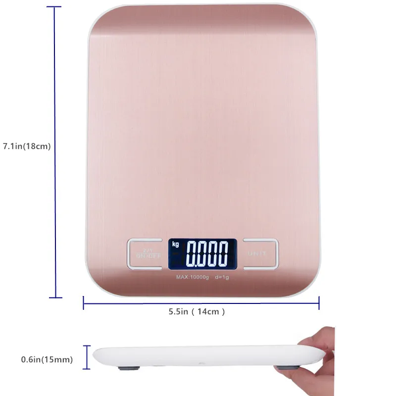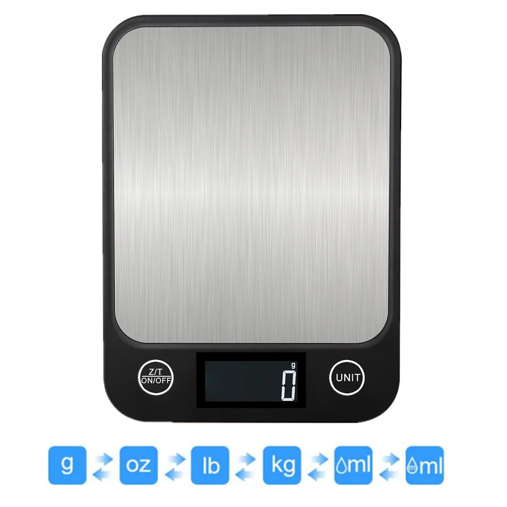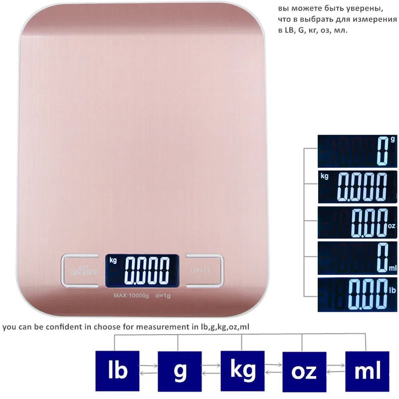 Электронные кухонные весы, 10 кг, многофункциональные, с ЖК-дисплеем, из нержавеющей стали