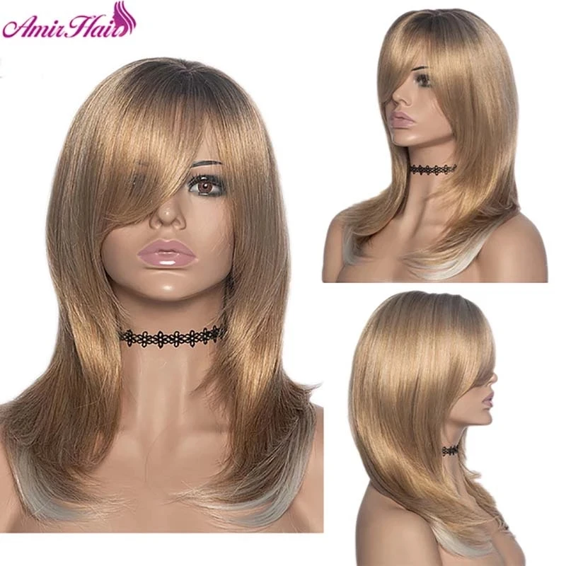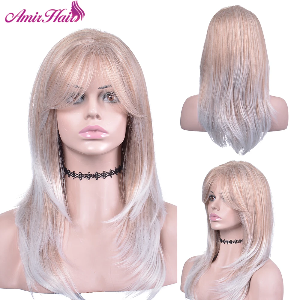 Искусственные парики Amir, длинные прямые Многослойные прически, Омбре, коричневый, блонд, пепельный, с челкой для чернокожих женщин, повседневные натуральные
