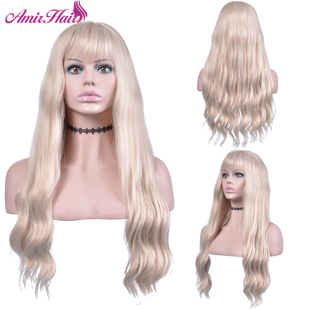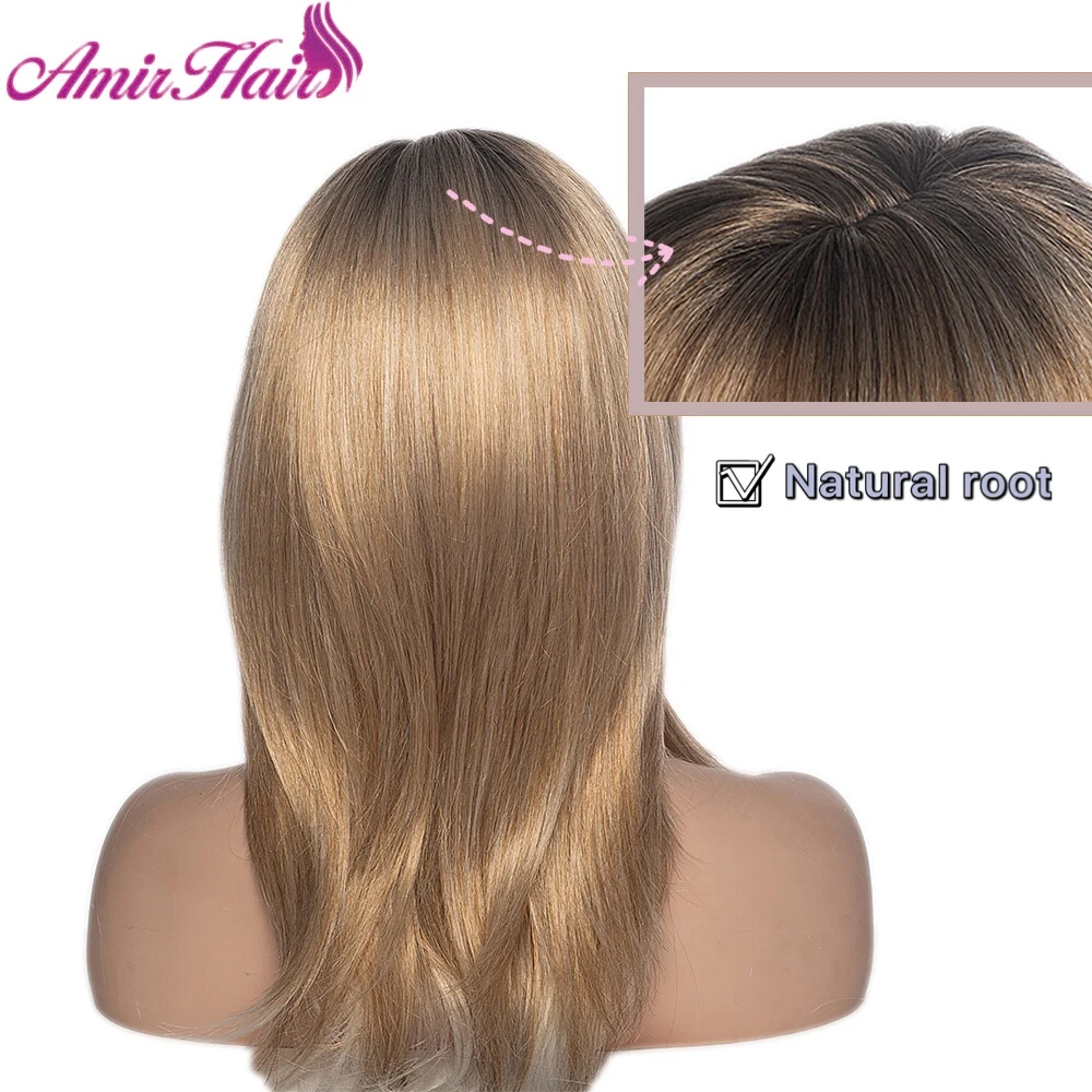 Amir блонд боб парик прямые синтетические волосы с челкой для женщи...