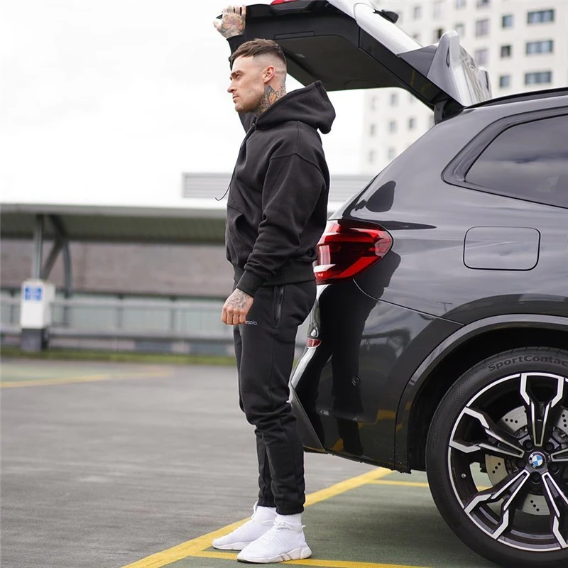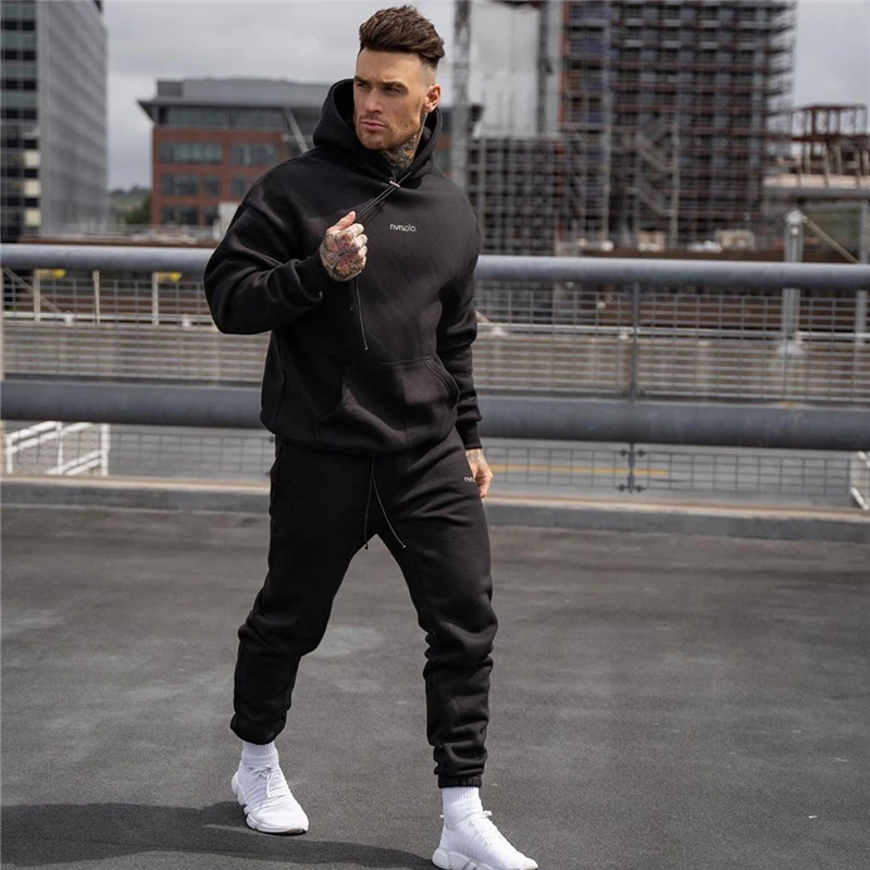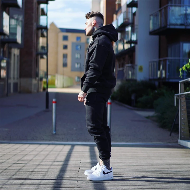 Мужской спортивный костюм из двух предметов, толстовка с капюшоном и штаны, из хлопка, для бега, на осень, 2020