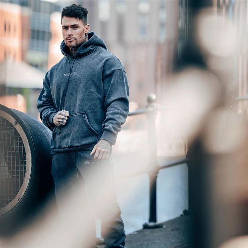 Мужской спортивный костюм, хлопковая толстовка с капюшоном и штаны,...