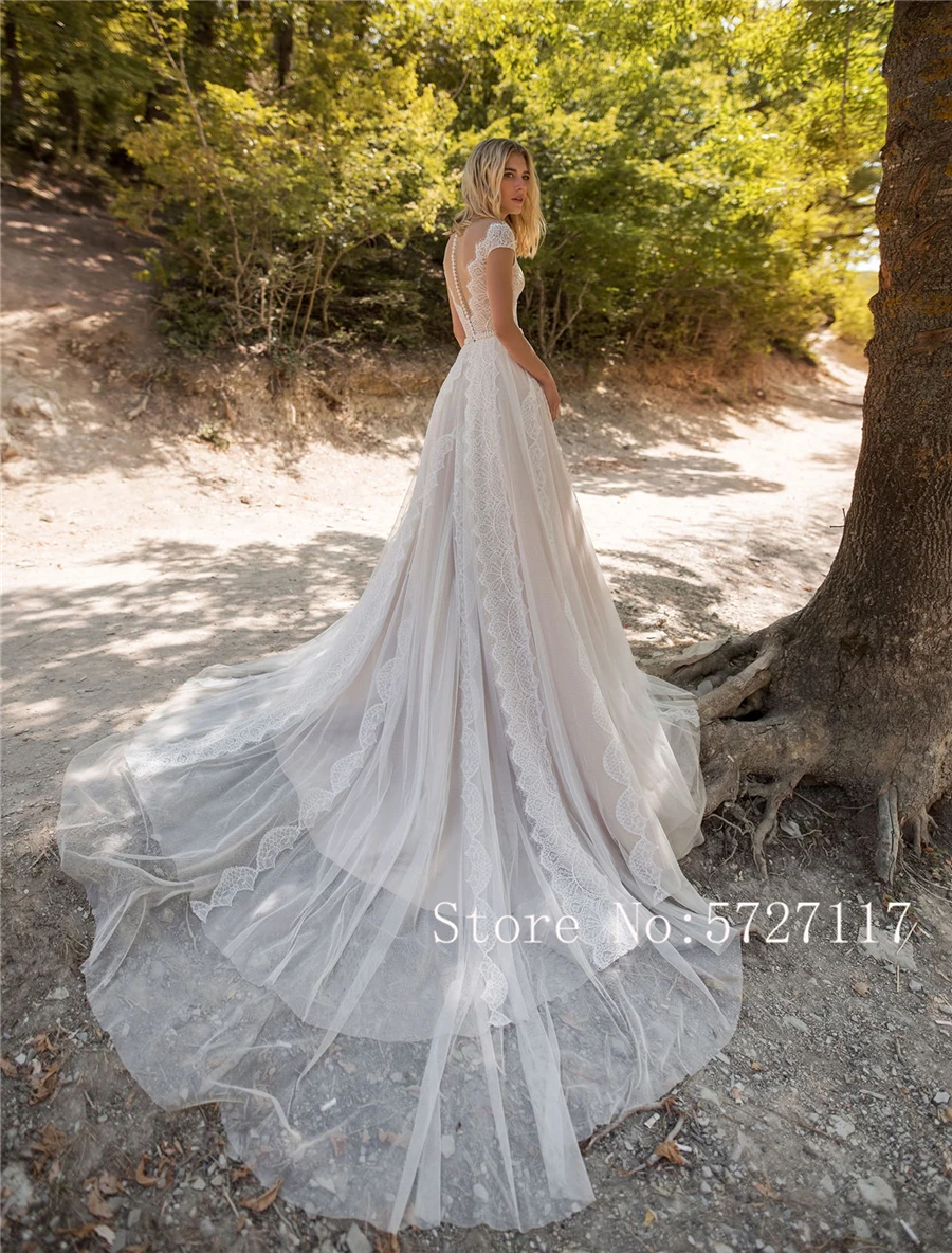 Прозрачное свадебное платье цвета шампанского с изысканным кружевным глубоким вырезом и поясом с бусинами свадебное платье Свадебные платья