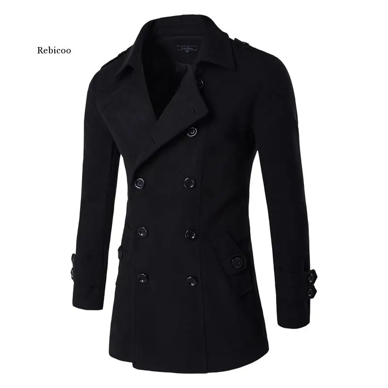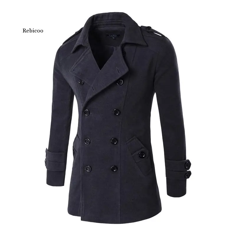 Для Мужчин's Демисезонный пальто для мужчин шерстяные пальто для женщин двубортный бушлат Тренч Для мужчин Slim Fit