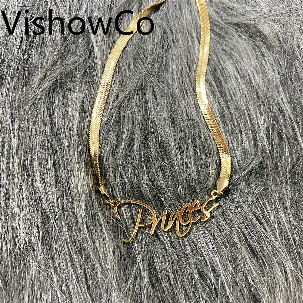 Ожерелье с именем на заказ VishowCo, чокер из нержавеющей стали под...