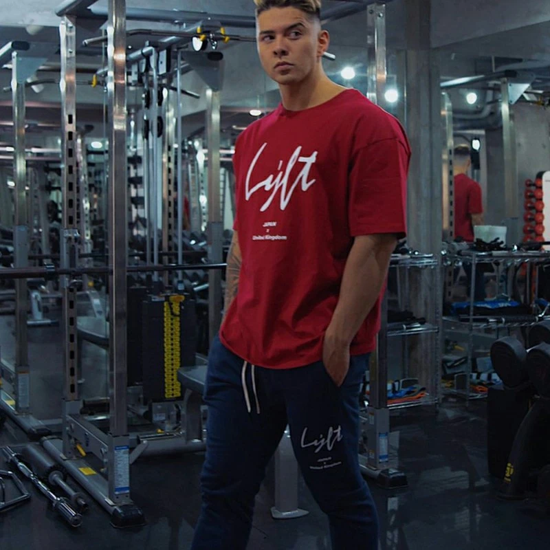 Логотипом оверсайз футболка для бега; Спортивная одежда из хлопка футболка для фитнеса с коротким рукавом рубашка Мужчины Бег тренировки Футболка для тренировок, топы