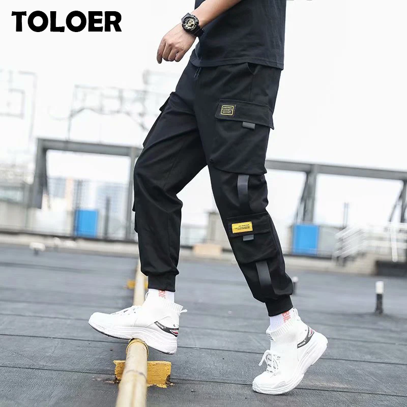 Брюки-карго мужские, черные, с боковыми карманами, в стиле хип-хоп