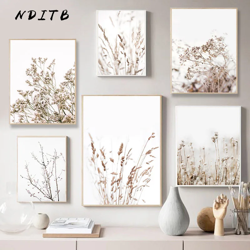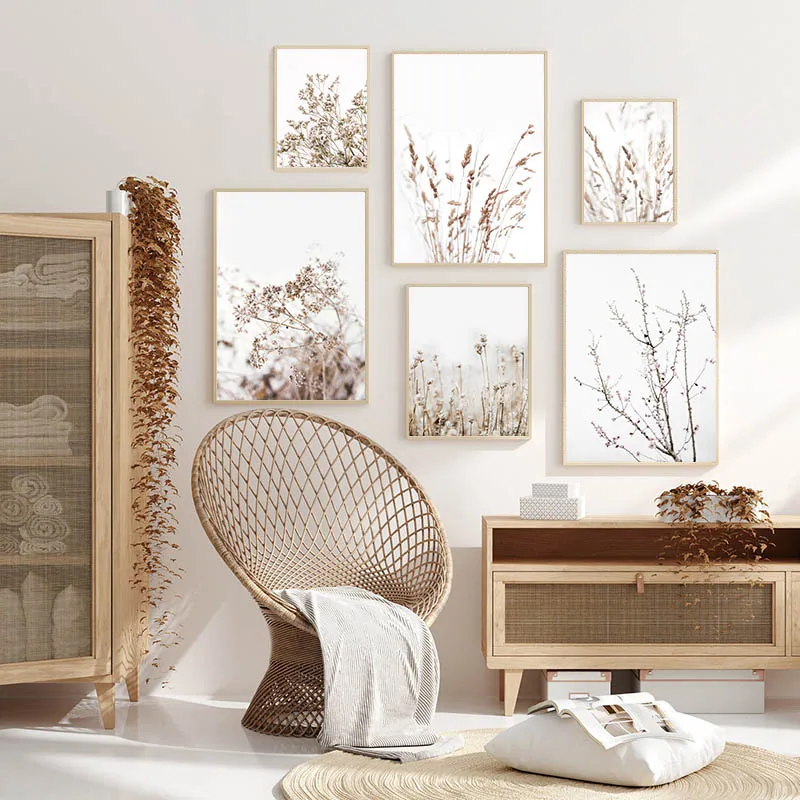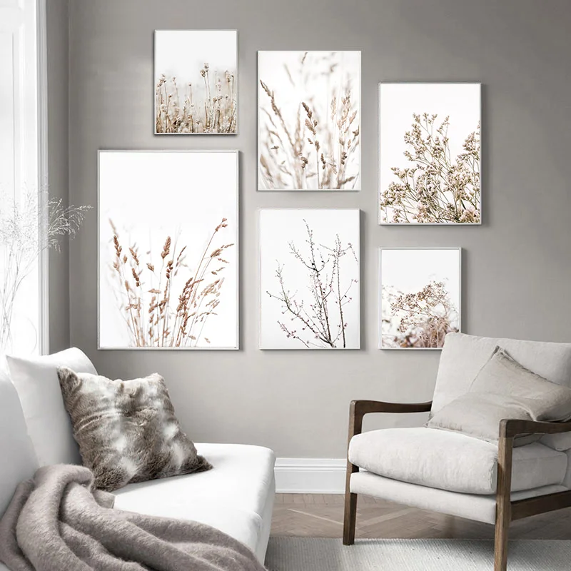 Скандинавская зимняя трава, природное растение, холст, плакат, минималистичное Ботаническое искусство, живопись, Настенная картина, Современное украшение для дома