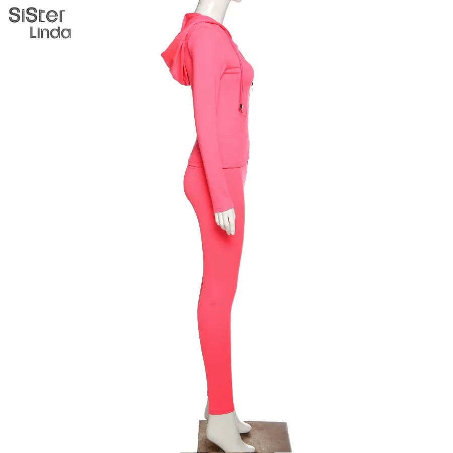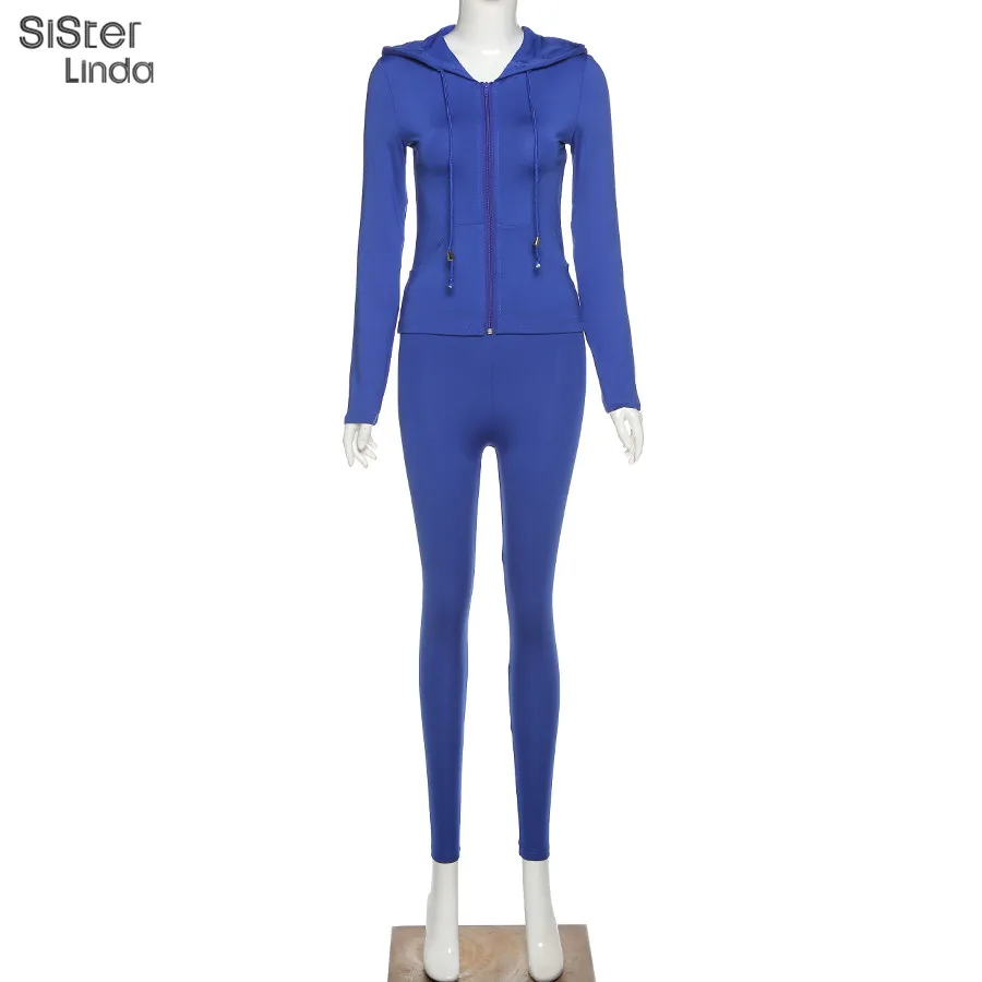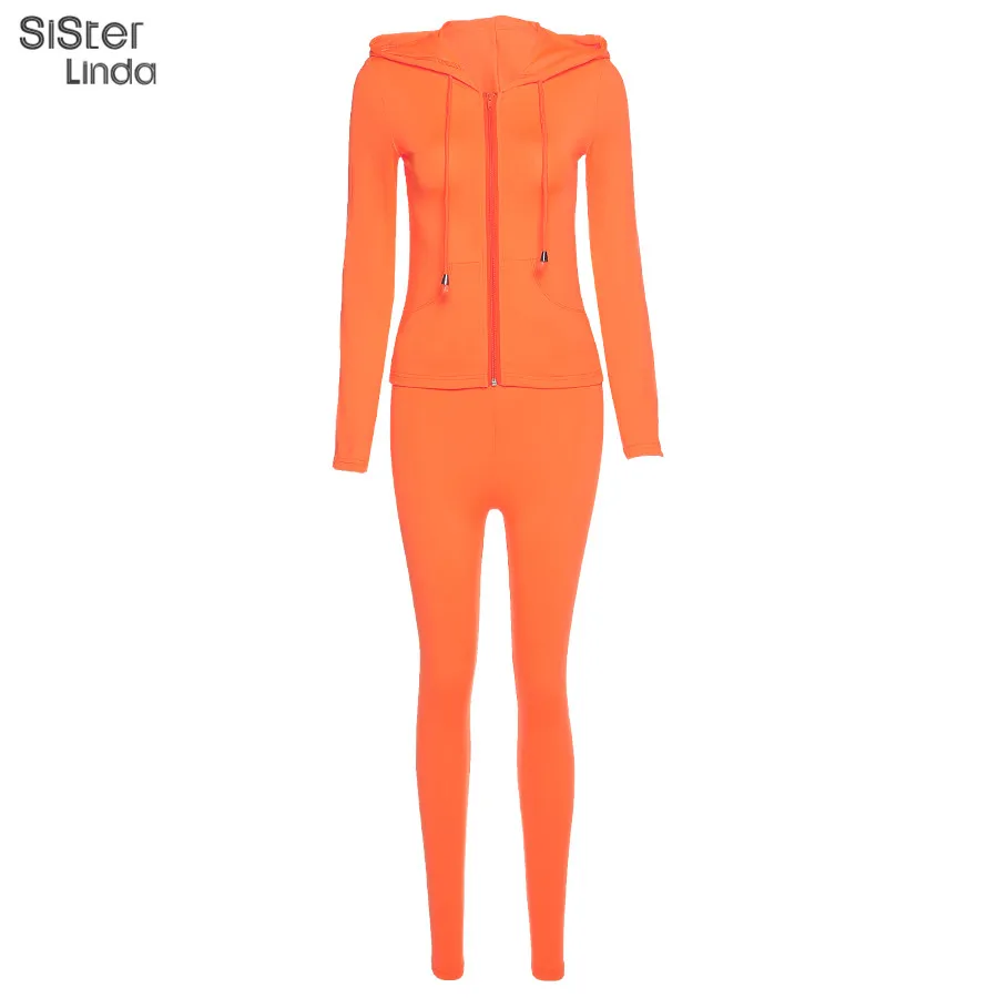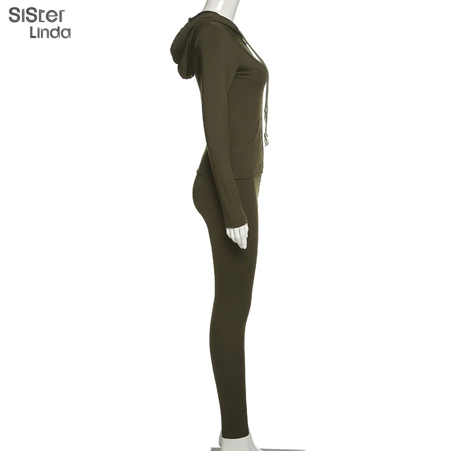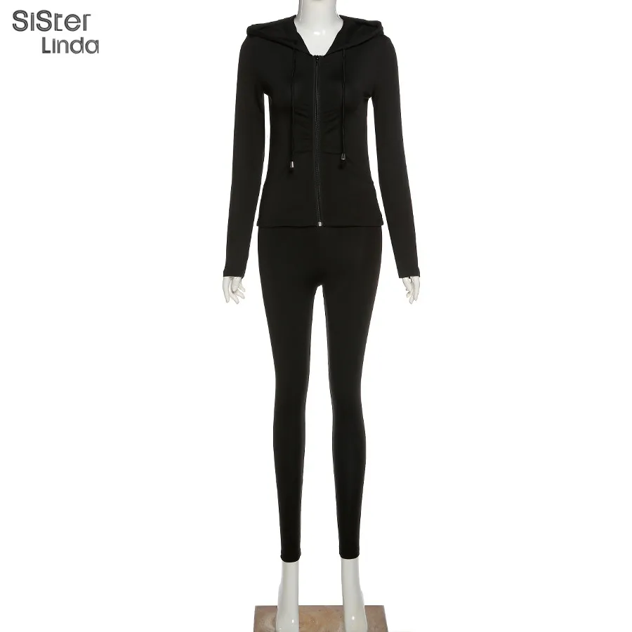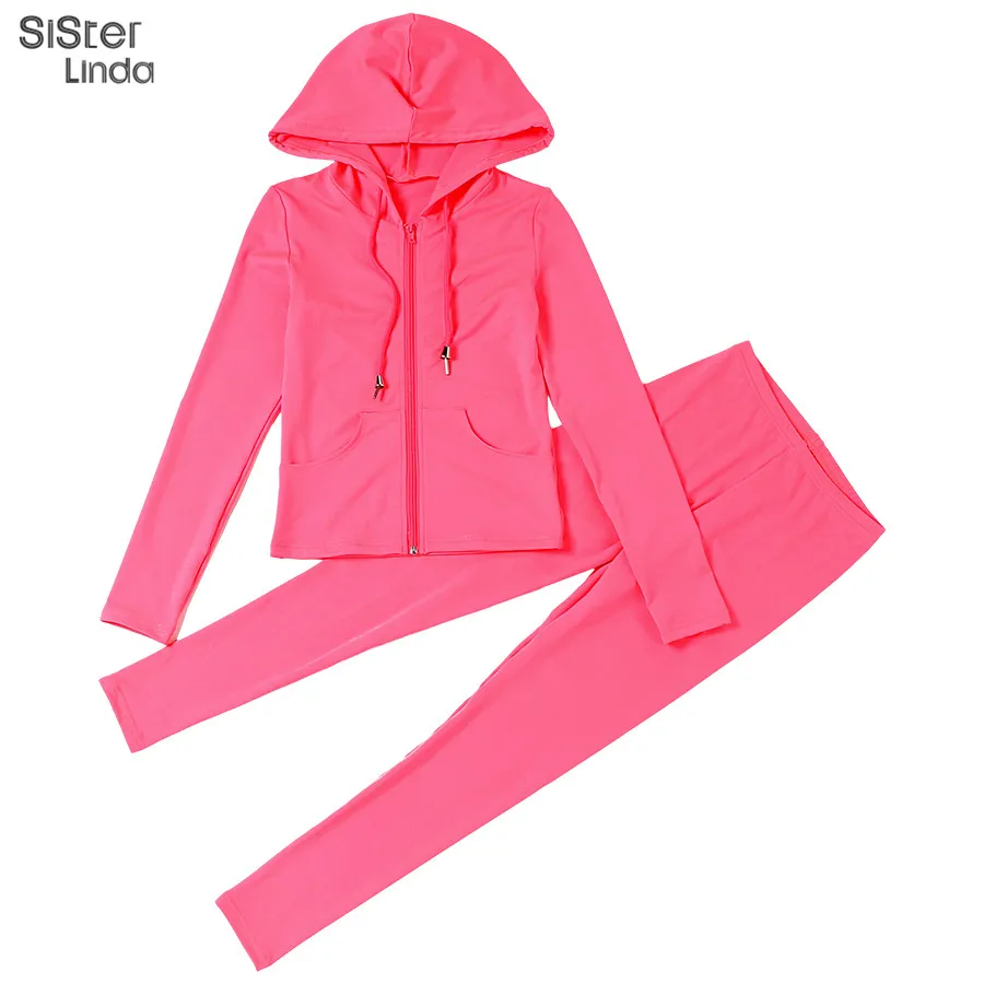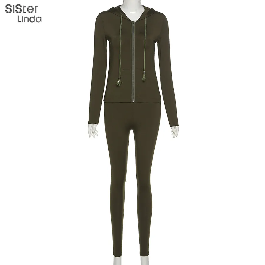 Женский спортивный топ Sisterlinda с капюшоном на молнии и карманами, комплект из 2 предметов, топ с длинными рукавами и леггинсы, спортивный костюм