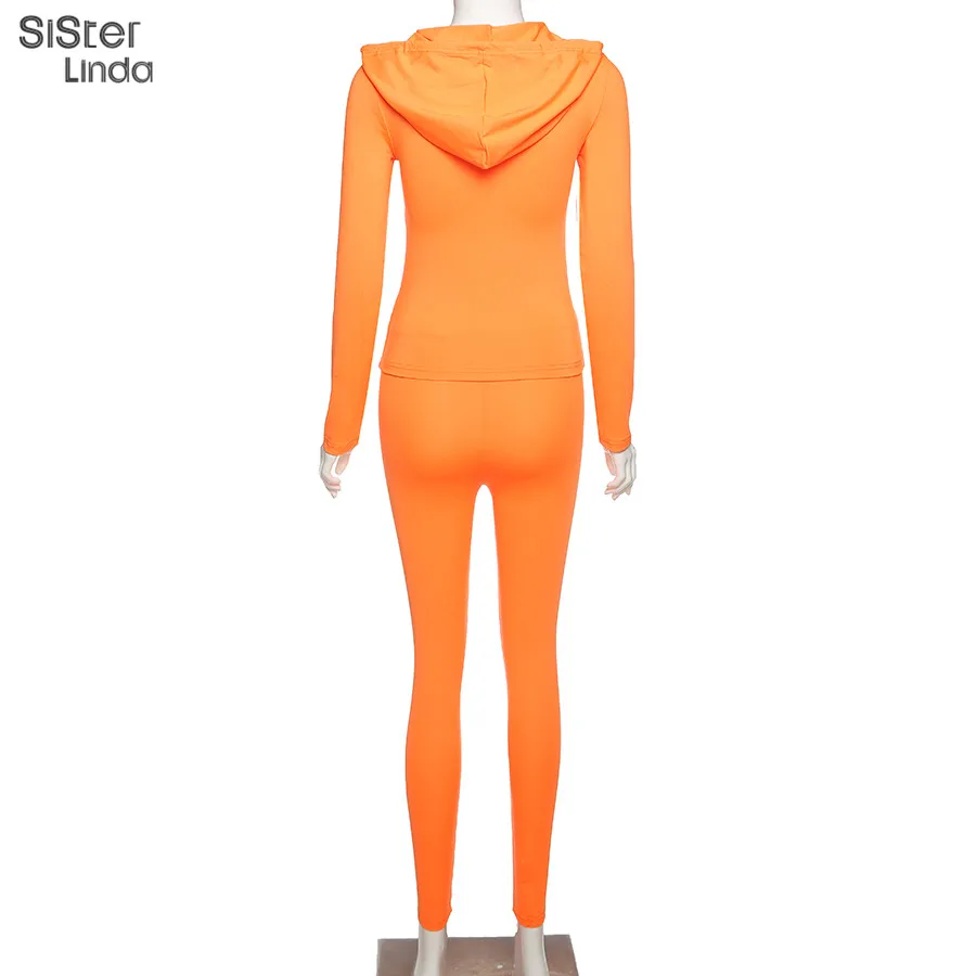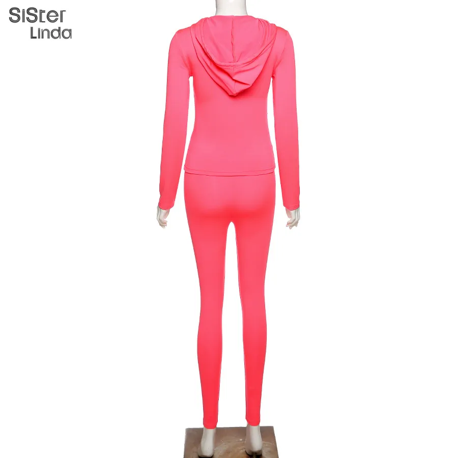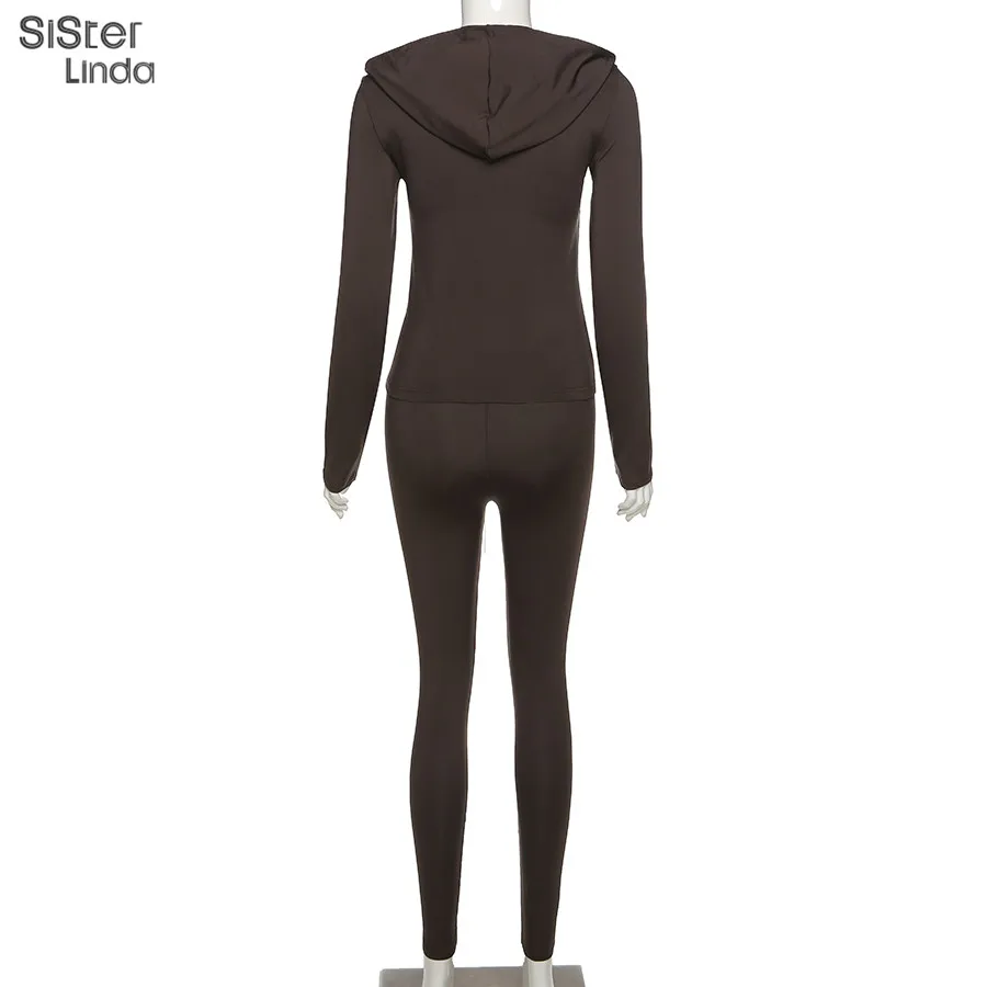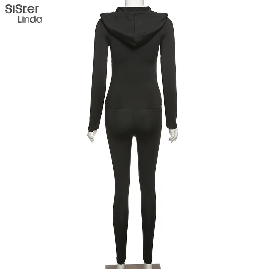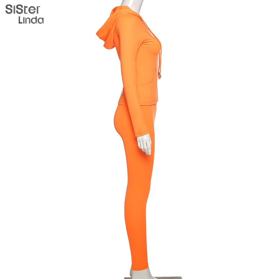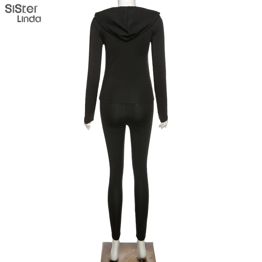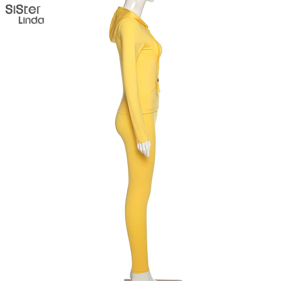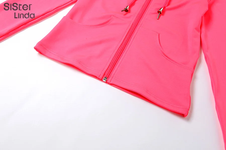 Женский спортивный топ Sisterlinda с капюшоном на молнии и карманами, комплект из 2 предметов, топ с длинными рукавами и леггинсы, спортивный костюм
