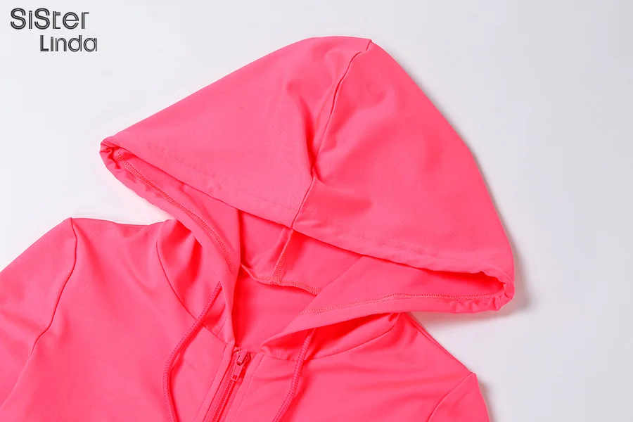 Женский спортивный костюм на молнии с длинным рукавом и капюшоном