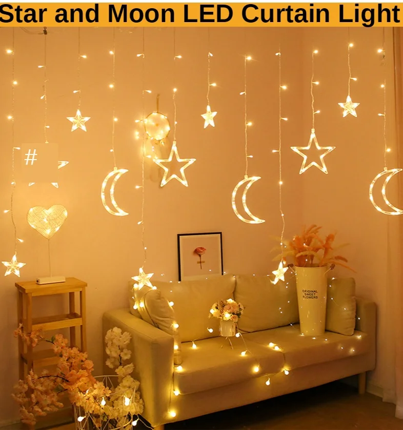 СВЕТОДИОДНАЯ Гирлянда-занавес в виде звезды и Луны
