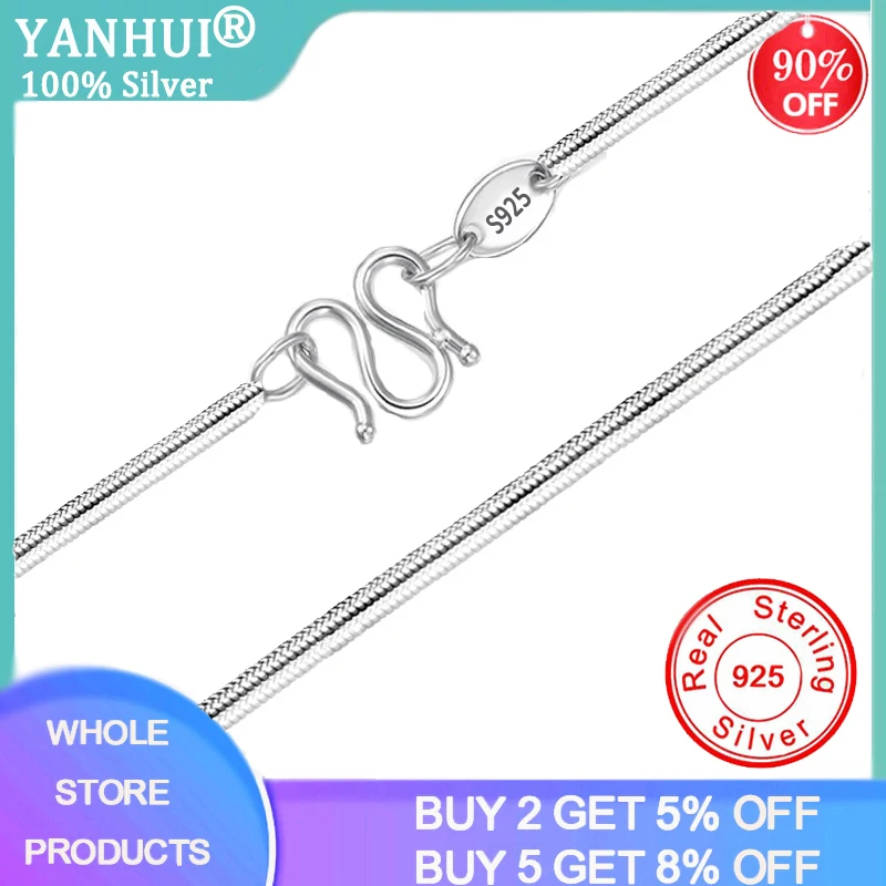 YANHUI 100% натуральная 925 пробы серебряные ожерелья для Женская цепочка в виде змеи ожерелье ювелирные изделия для кулон оптом Серебряный 925 ювелирные изделия