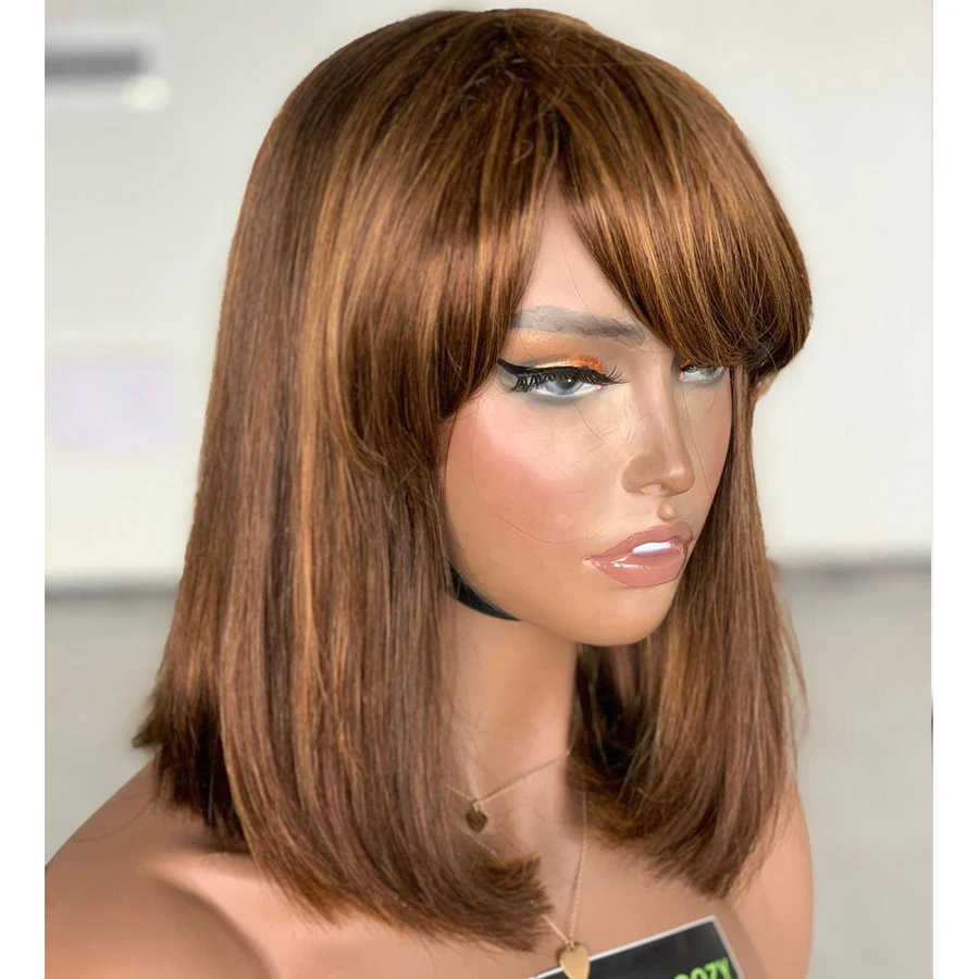 Парики женские короткие из отбеленных волос Simbeauty, с бахромой, плотность 200