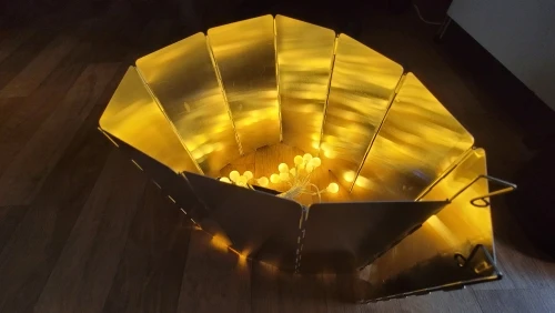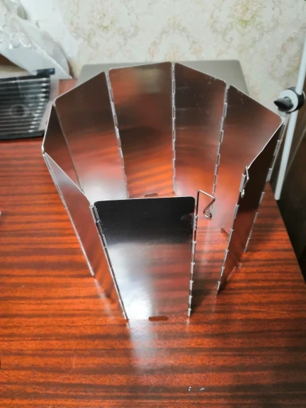 Экран как в описании, 12 листов оказалось достаточно много (около 30 см в диаметре). Разбирается легко, листы соединены штырьками, которые можно достать и уменьшить число секций до нужного количества. Экран с 12-ю секциями весит 300 г без чехла. Доехал недели за две, по дороге не пострадал.