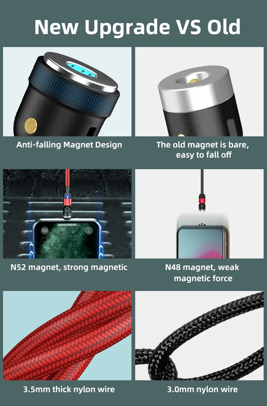 Магнитный кабель Hoco Micro USB Type-C, для Xiaomi, Huawei, с поворотом на 540 градусов, для быстрой зарядки, 3 А, для iPhone 11, 12Pro Max