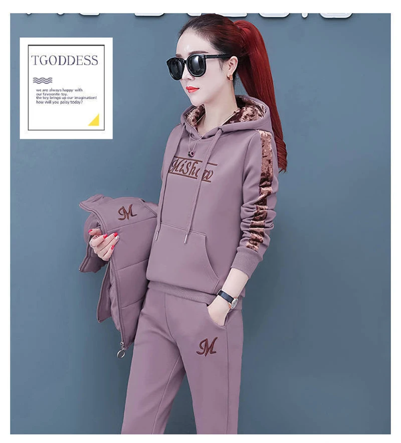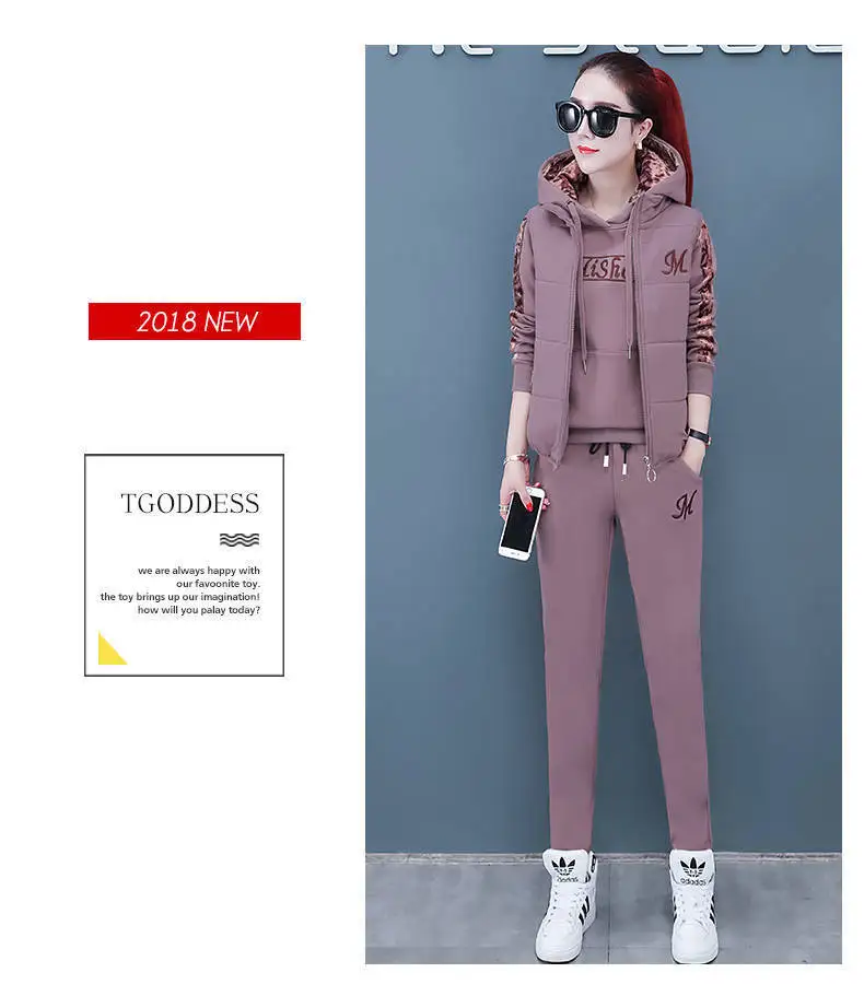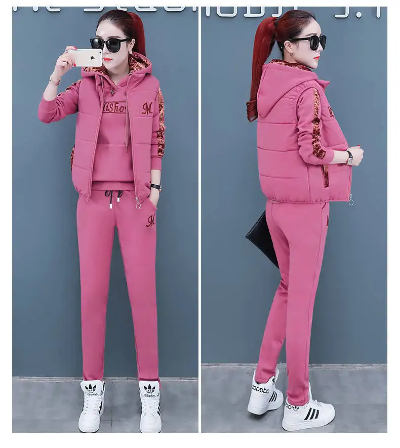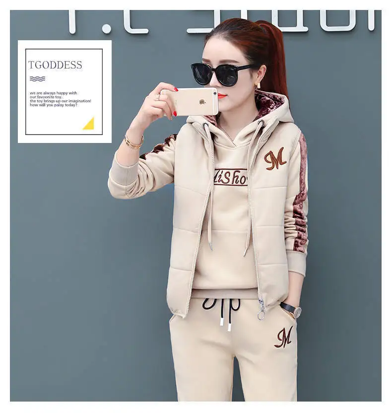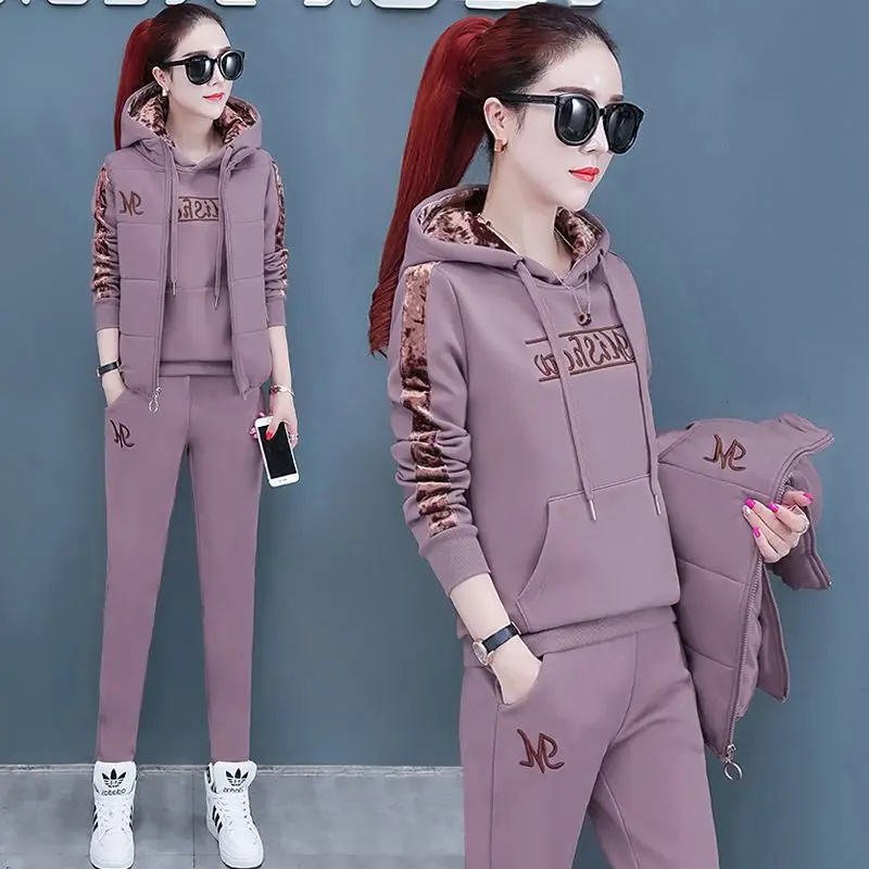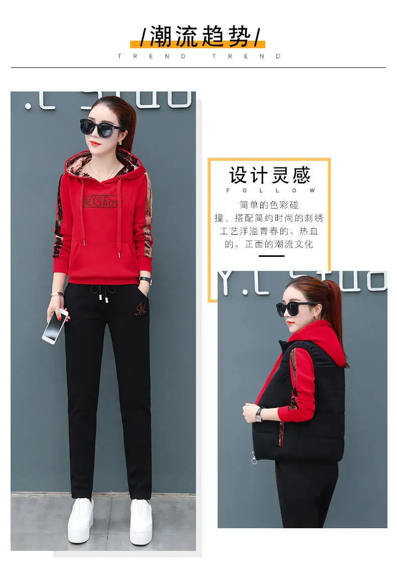 Женский спортивный костюм из 3 предметов, толстовка + жилет + брюки, повседневный костюм, бархатный теплый спортивный костюм, женская одежда, зима