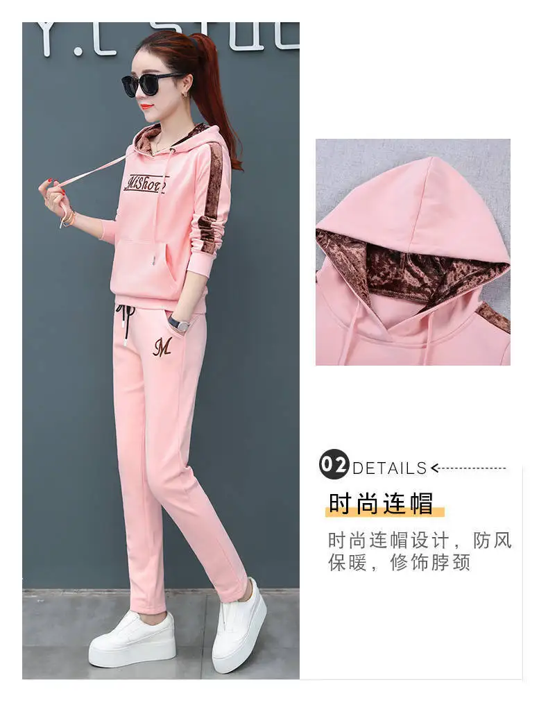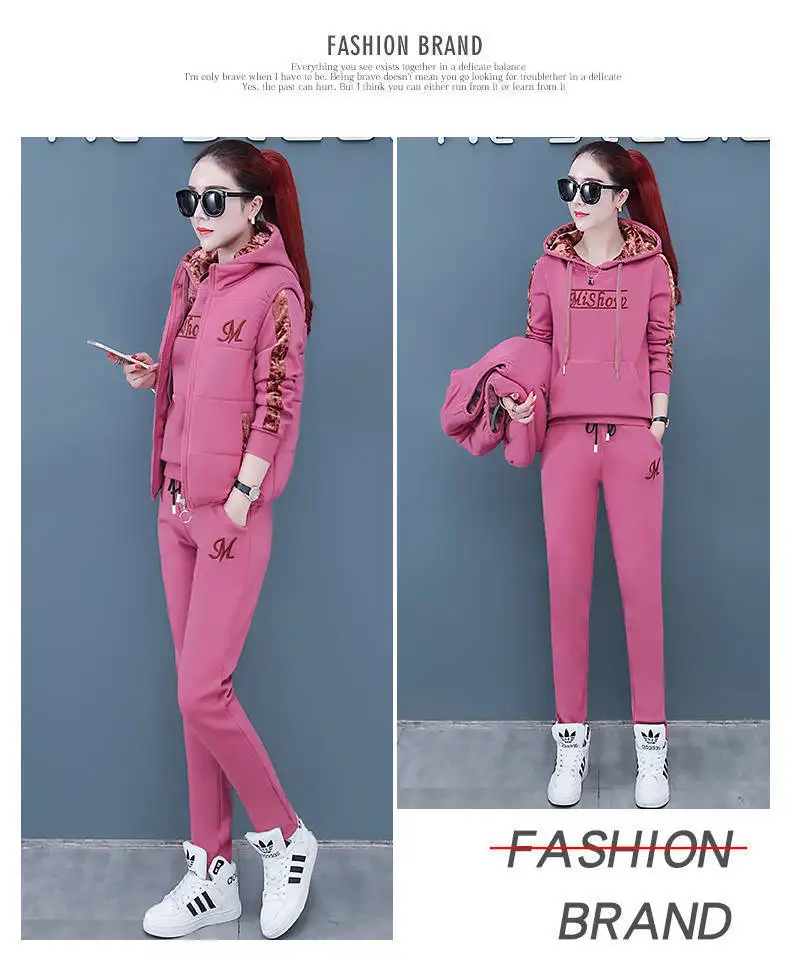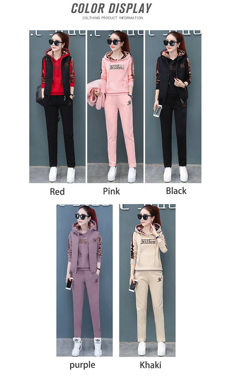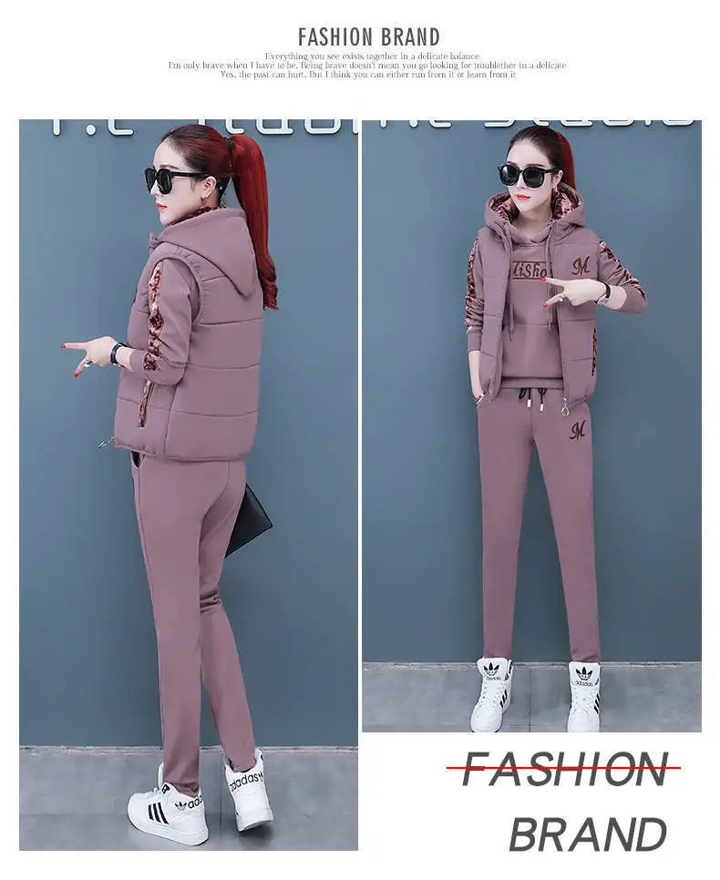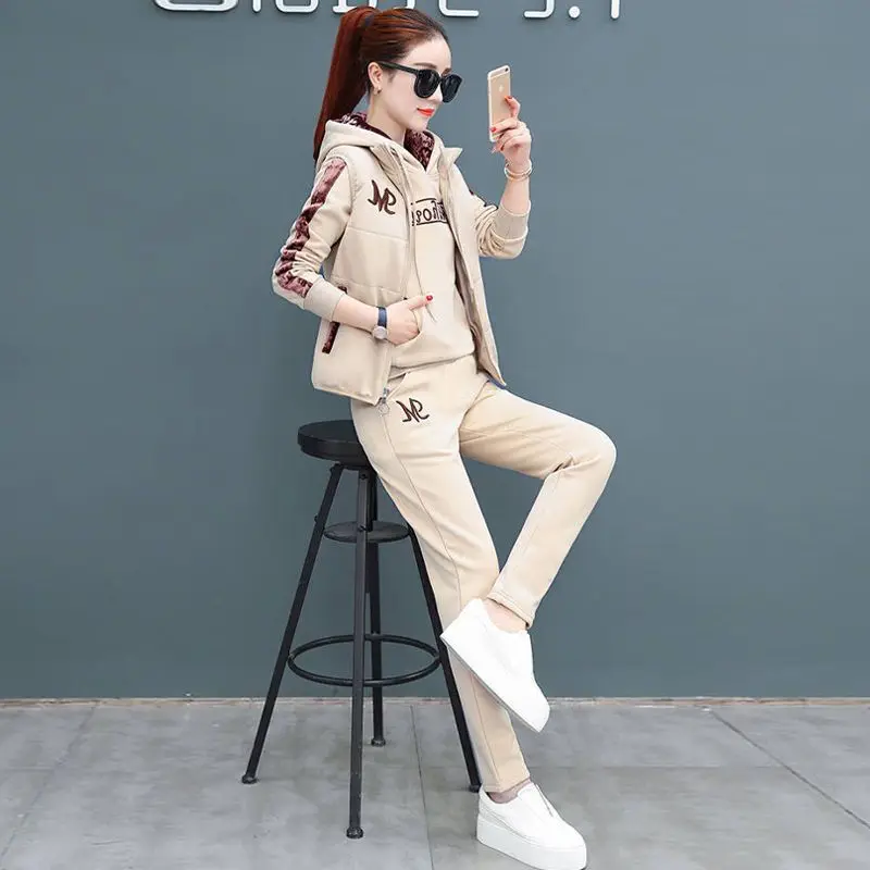 Женский спортивный костюм из 3 предметов, толстовка + жилет + брюки, повседневный костюм, бархатный теплый спортивный костюм, женская одежда, зима