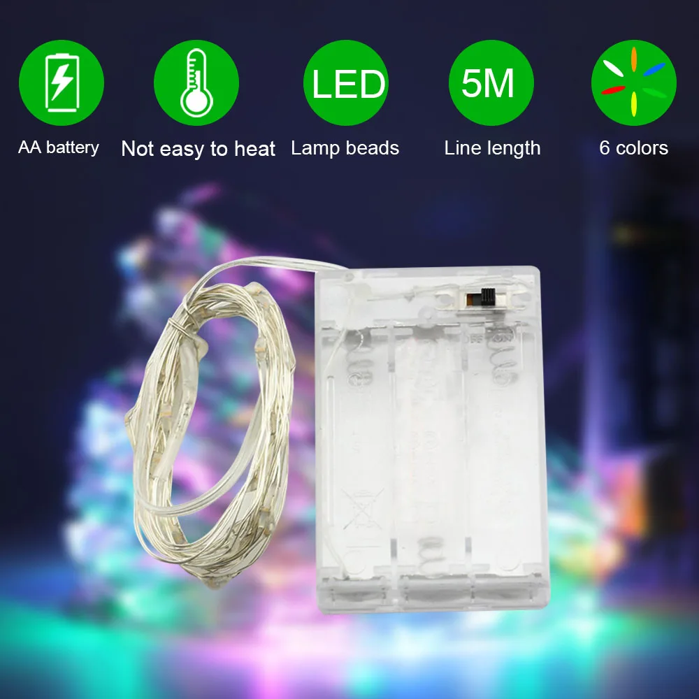 5м 50 светодиодов светодиодный светильник с серебряной проволоки Фея светильник s ночной Светильник для Рождественский венок комната для крытой свадьбы украшения
