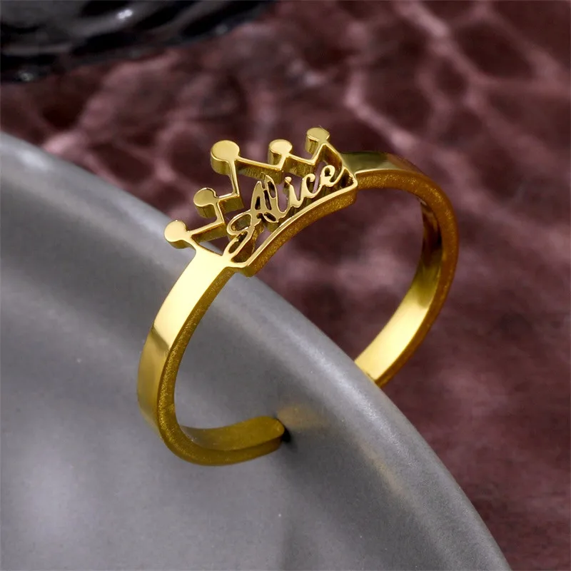 Корона полые имя кольца Multifont персонализированные имена украшения для влюбленных названия "на кольце для мам и дочек мемориал кольцо