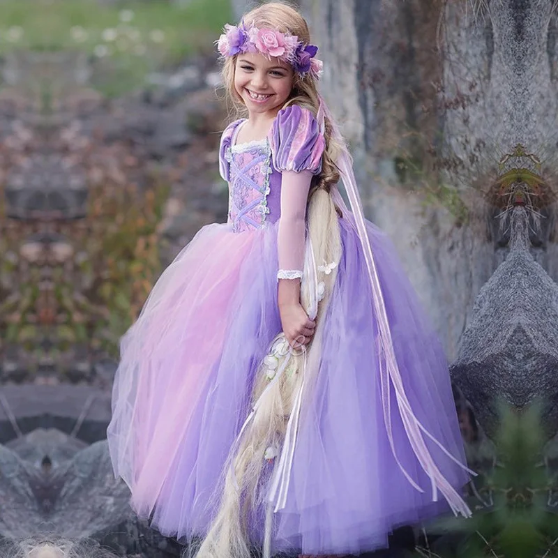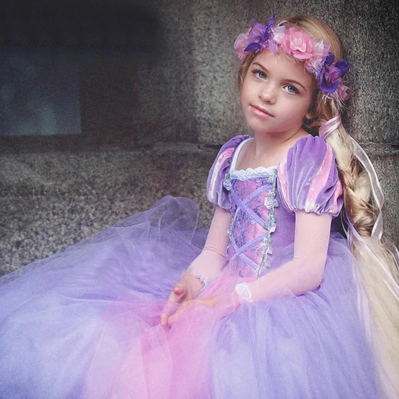 Рапунцель платье принцессы для девочек вечерние вещи; Нарядное платье на Хэллоуин для детей для костюмированной вечеринки на день рождения одежда для малышей карнавальный костюм
