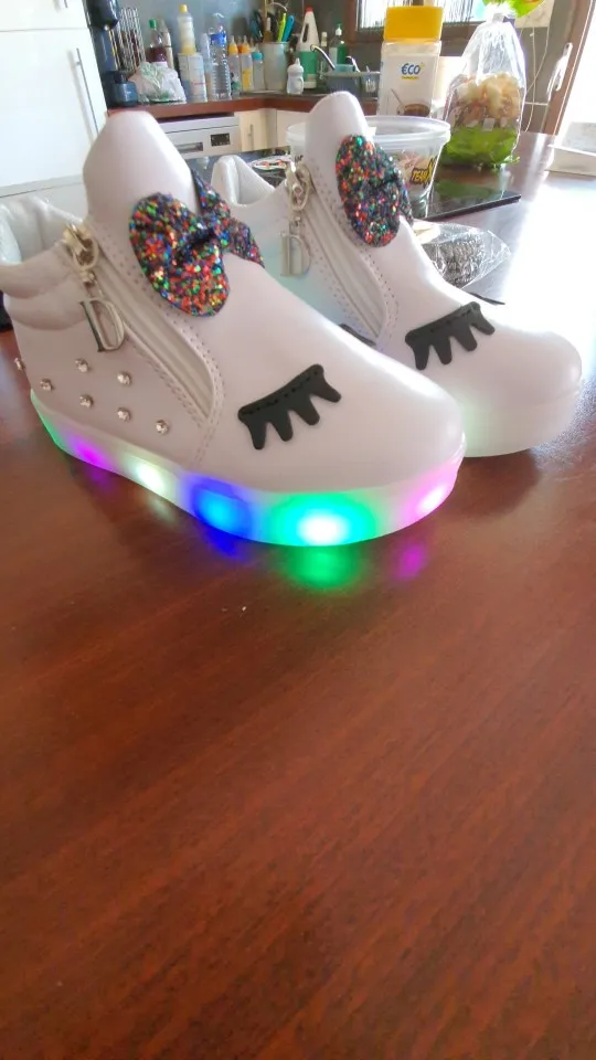 Так что увидел красивую обувь глаз, моя дочь любит их, за исключением того, что свет на подошве больше не загорается даже днем, а D молния, которая не снимает узлы и Блестящий уже сверху качества и взяв размер выше моего, делает тот же размер, что и размер ниже искать ошибку, я хотел бы знать, может ли продавец что-то сделать для этого Спасибо, спасибо.