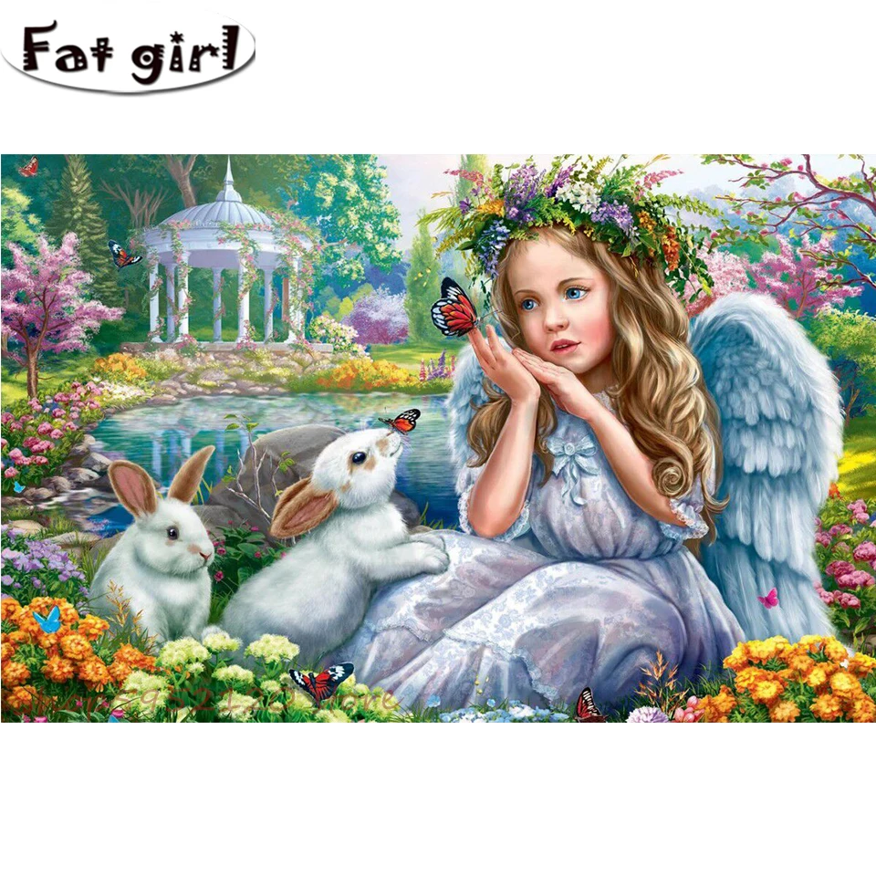Северный Европейский настенный Декор 5D Diy Алмазная картина ангел девочка вышивка крестиком цветок бабочка кролик вышивка полная мозаика