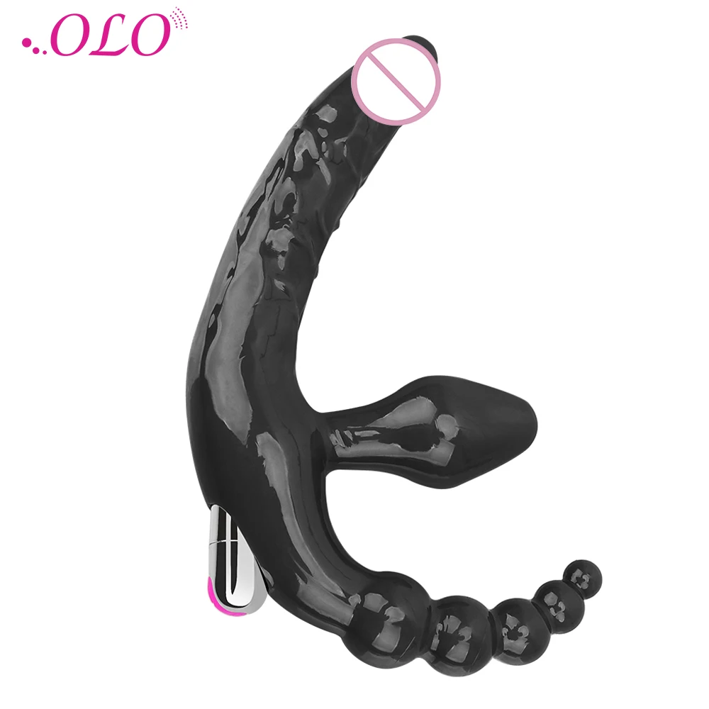 Оло Двойные головки без бретелек фаллоимитатор вибраторы Анальная пробка вибратор анальные шарики массажер простаты для женщин пара лесбиянок секс-продукт