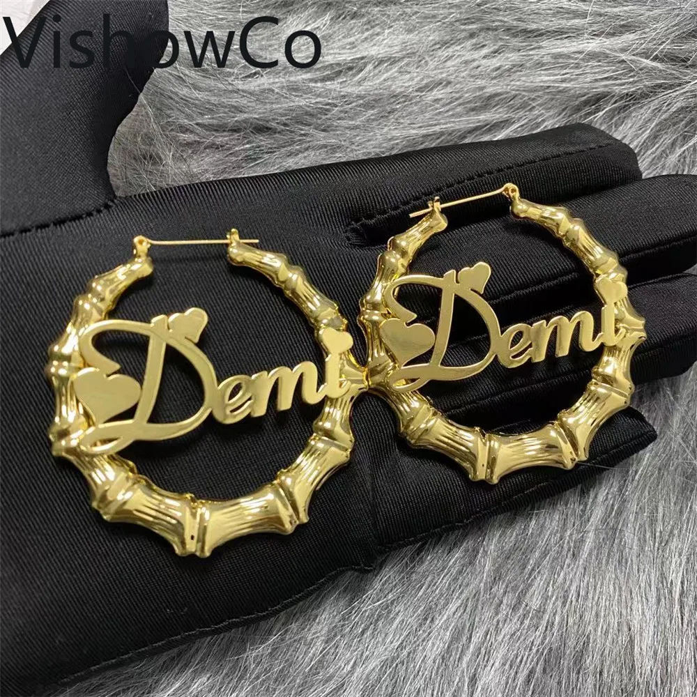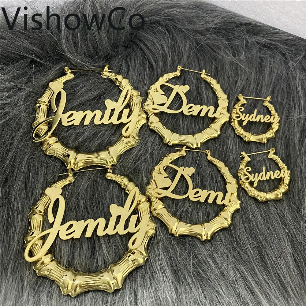 Персонализированные Бамбук Серьги-кольца из нержавеющей стали, персонализированные именные серьги в БАМБУКОВОМ стиле, Рождественский подарок серьги-кольца на заказ