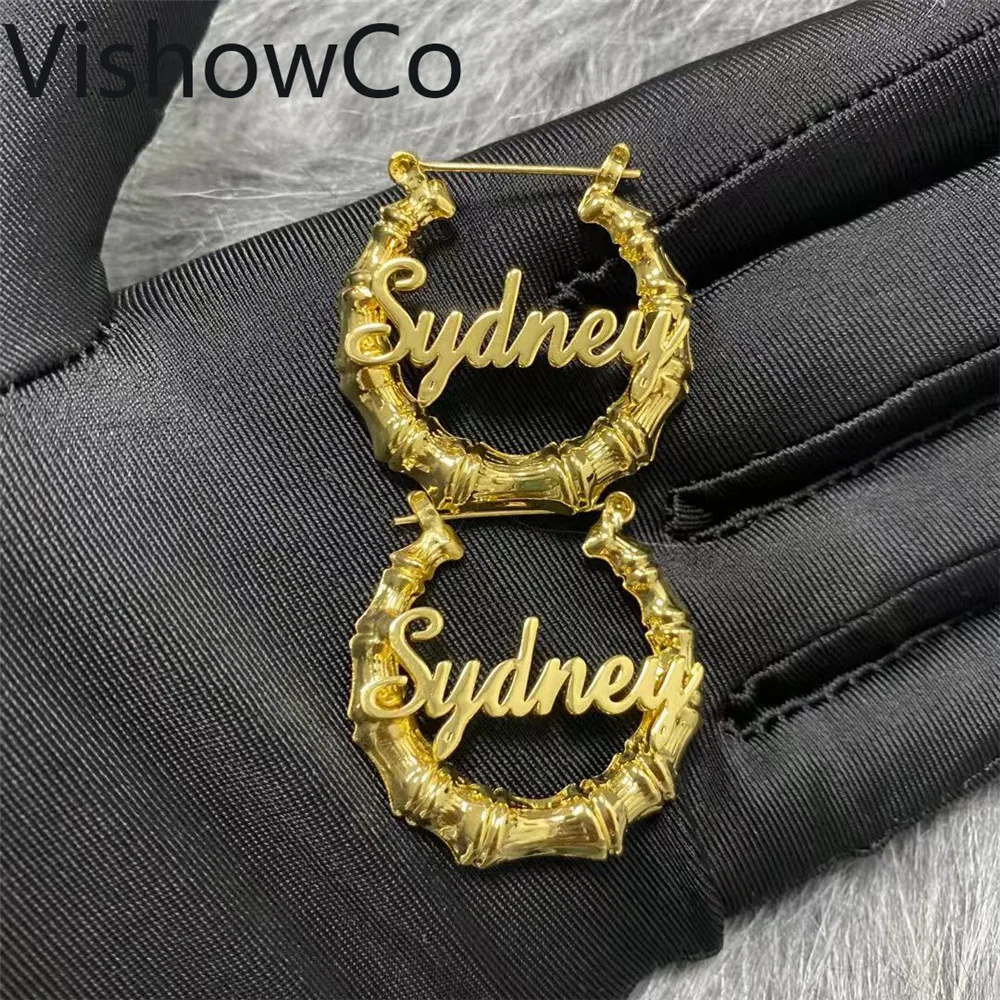 Висячие серьги с именем VishowCo, персонализированные круглые серьг...