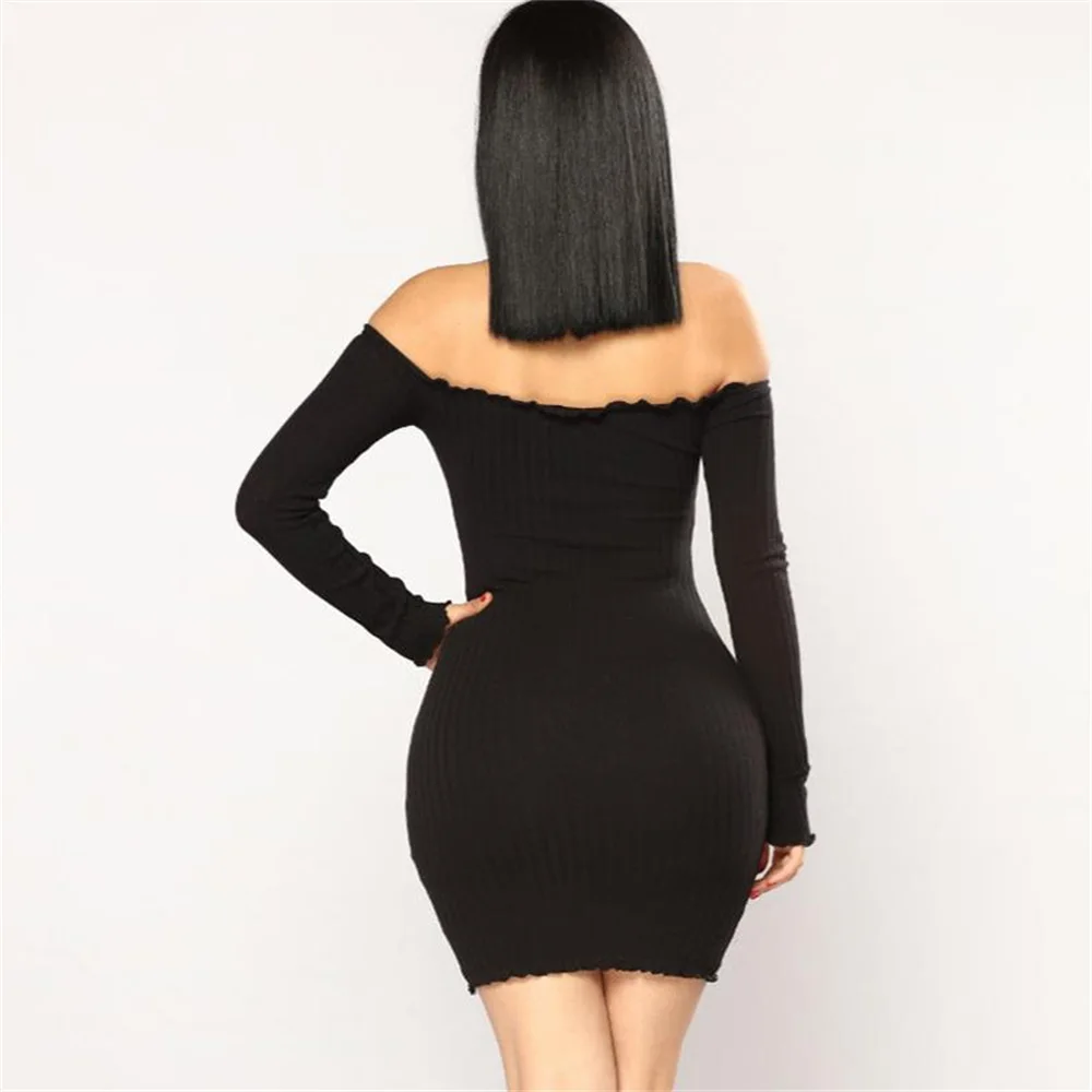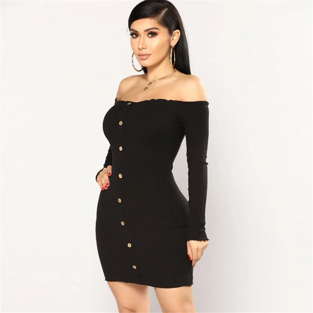 Новинка, Осеннее сексуальное облегающее платье с открытыми плечами ...
