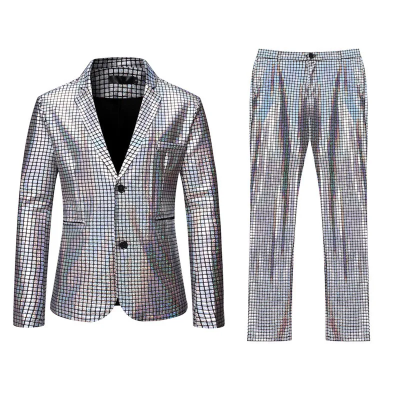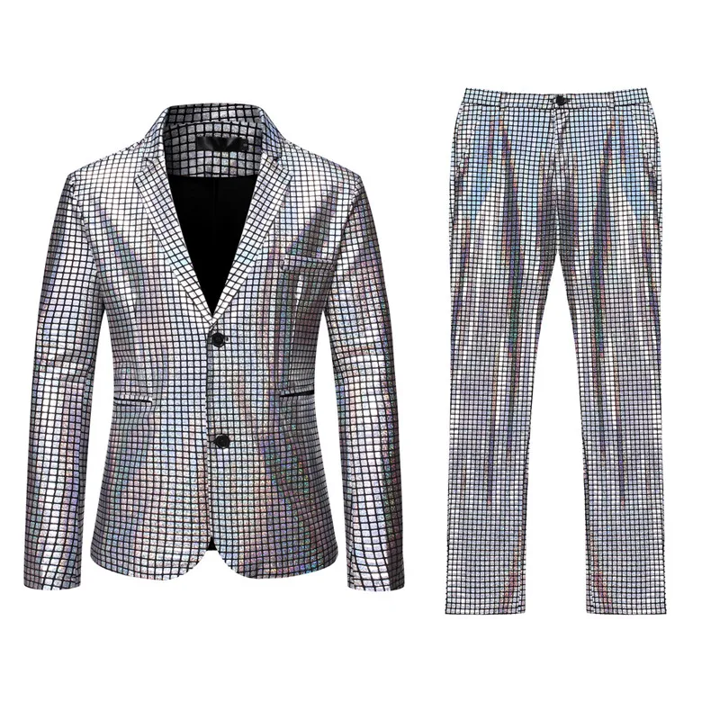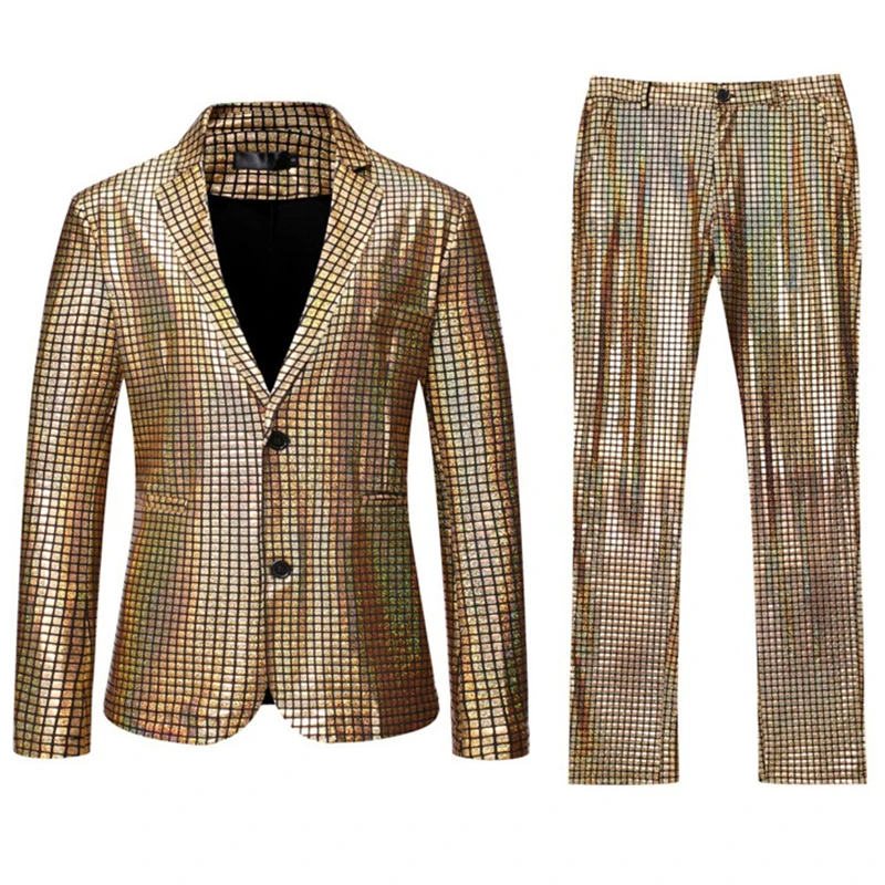 Мужской блестящий пиджак с блестками, однобортный костюм из 2 предметов (Блейзер + брюки), костюм для вечеринки, свадьбы, банкета, смокинг, мужской