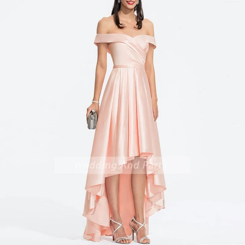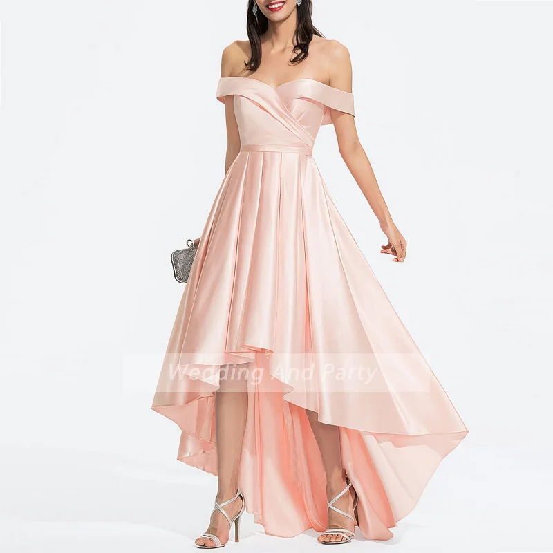 Женское платье для свадебвечерние, атласное розовое платье с открытыми плечами для официального выпускного вечера на новый год 2021, Элегантное коктейльное платье