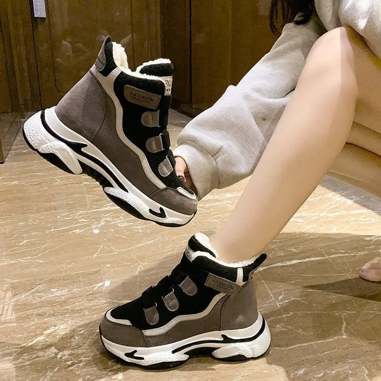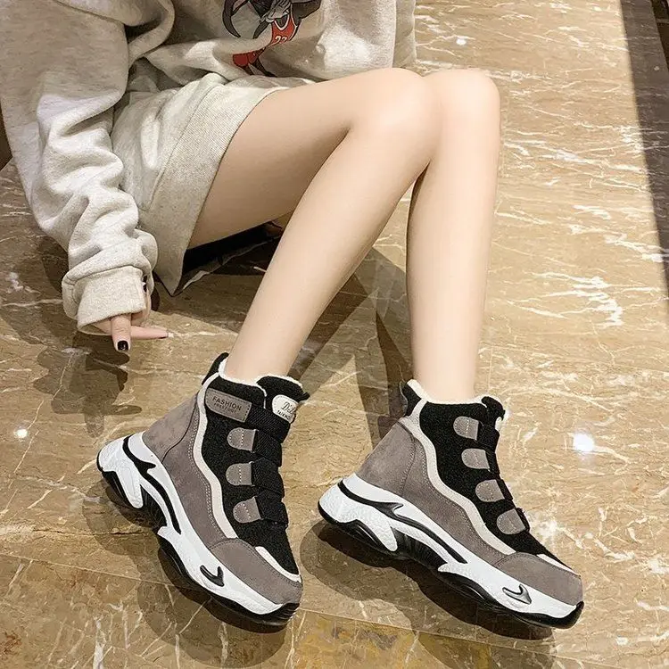 Женские кроссовки на массивной подошве, зимние теплые ботинки с плюшевой подкладкой, 2021