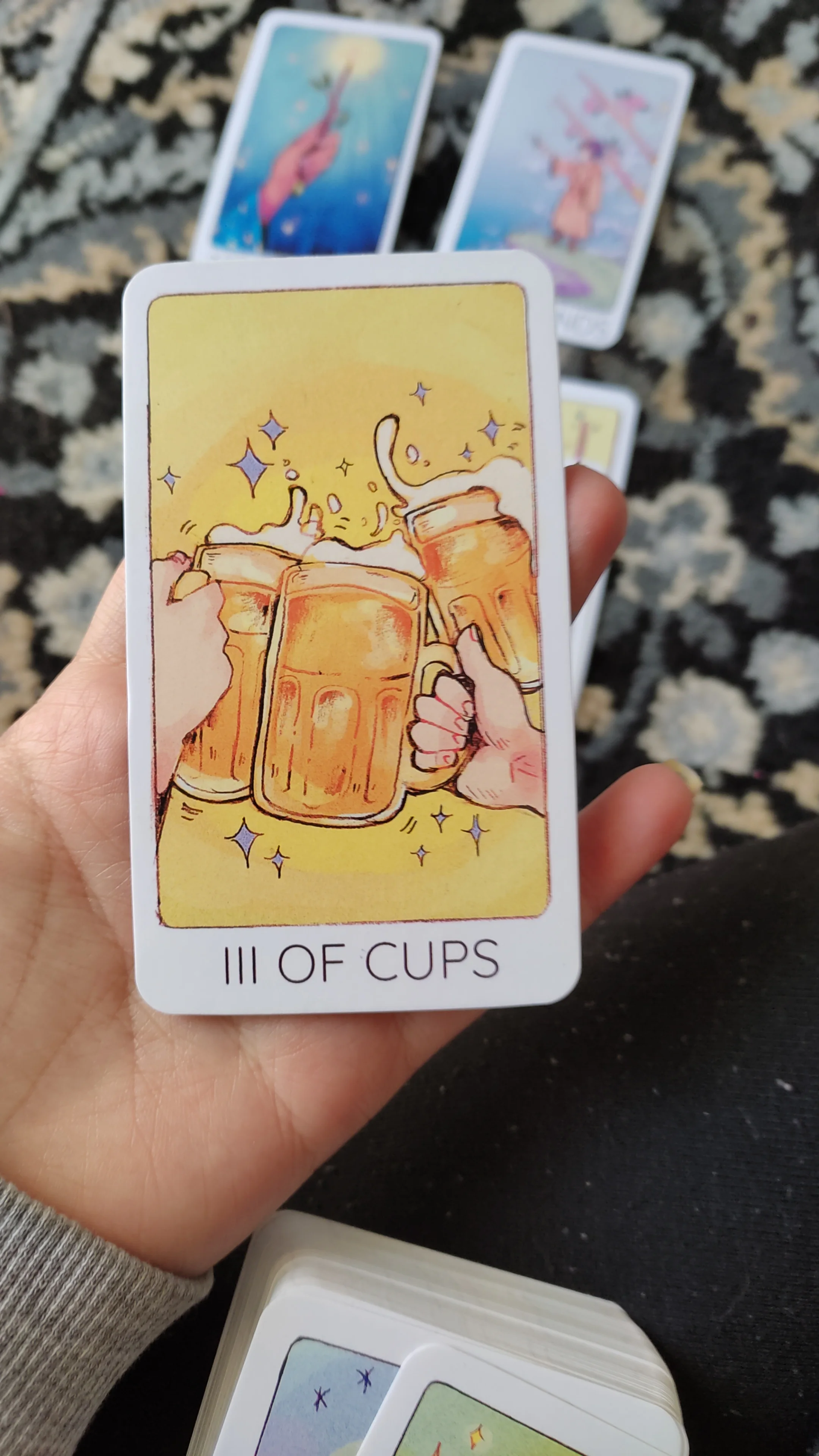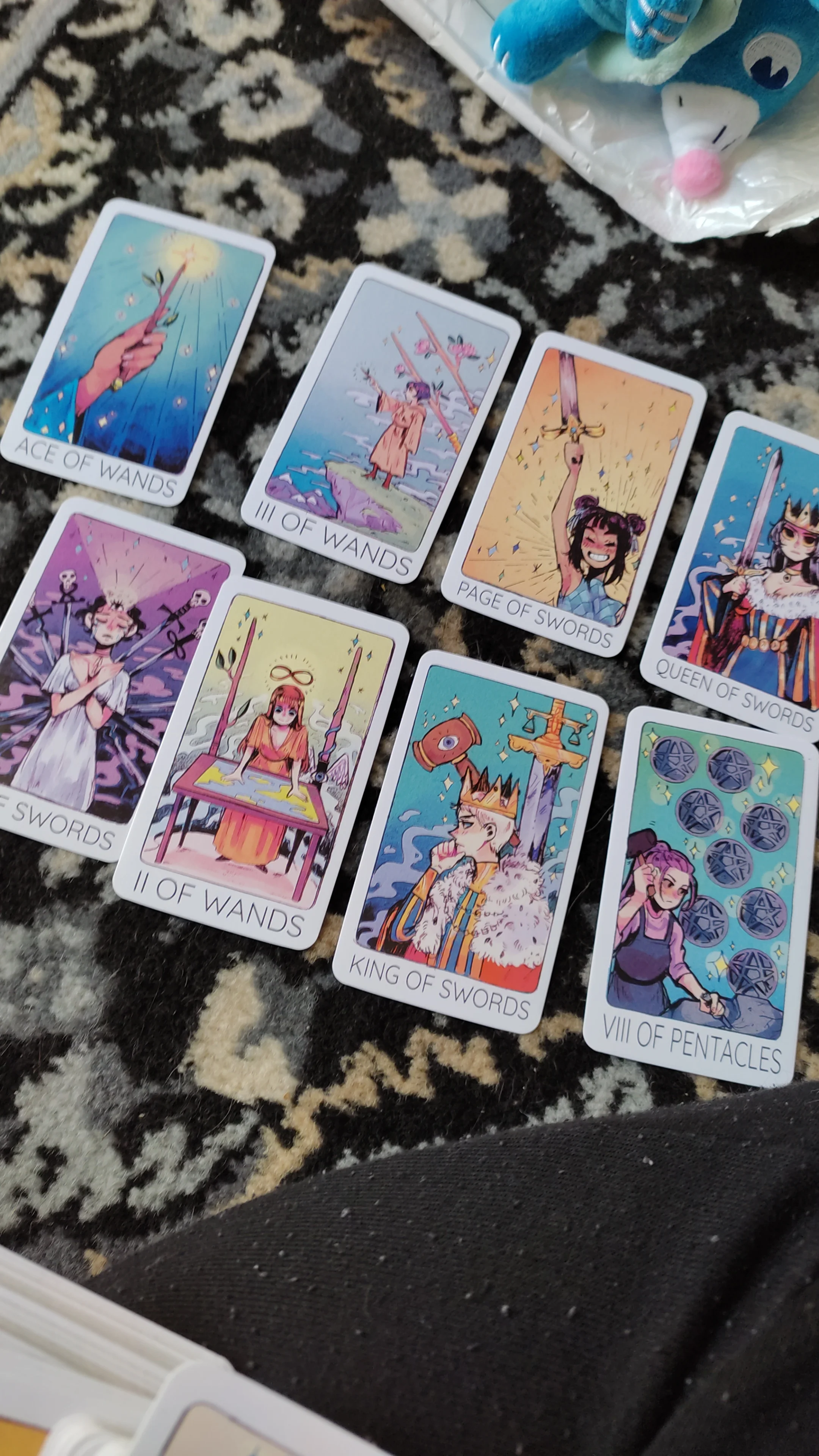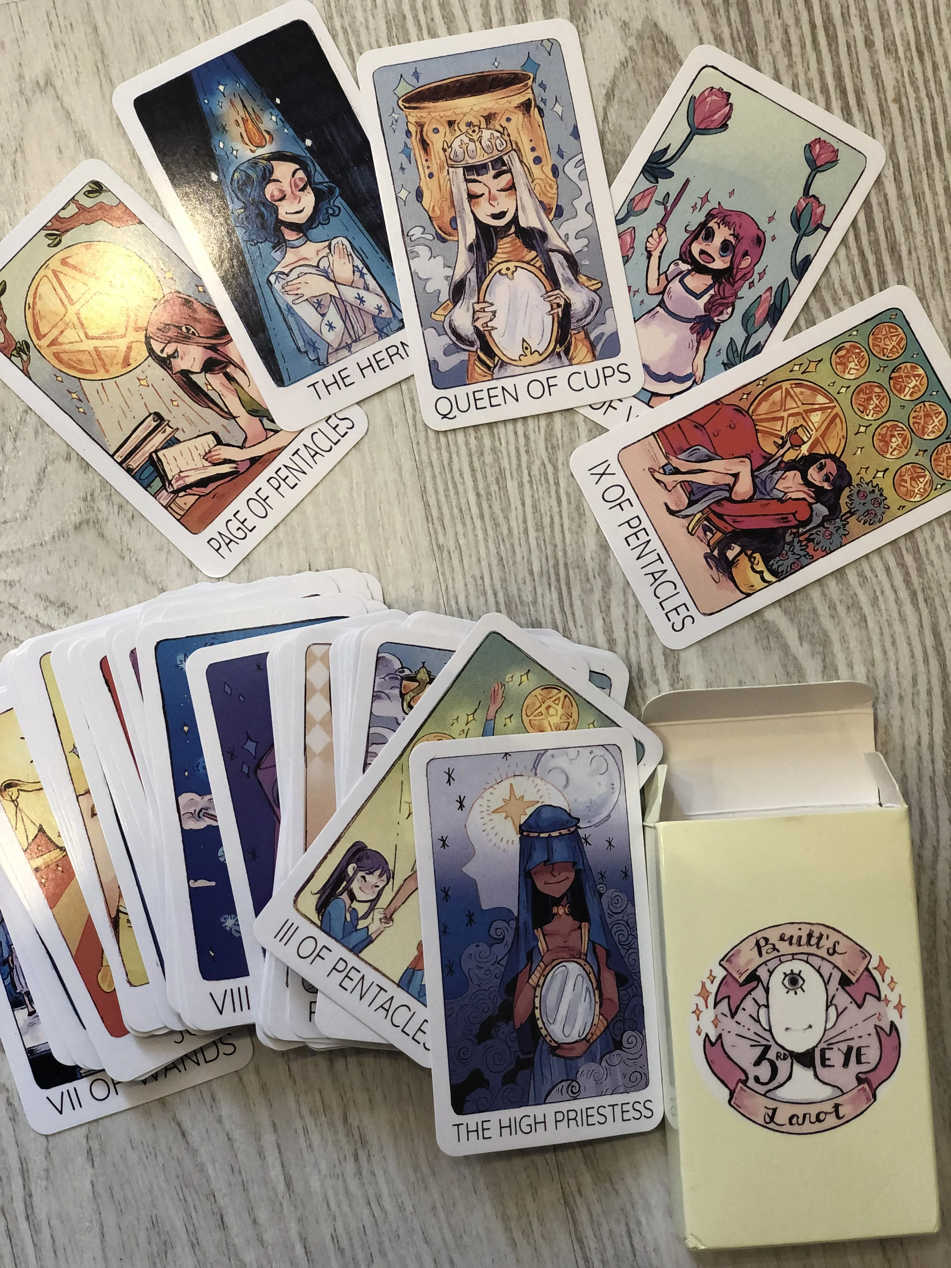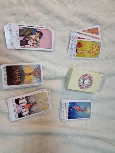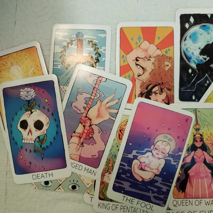 Это моя первая колода Таро, и это так полезно, что рисунки показывают значение карты. Я очень доволен этим заказом, я рекомендую его! :) Доставка занимает около 2 недель из Китая в Швецию (Европу), поэтому она была очень быстрой. Карты хорошего качества, особенно за эту цену, и их нет 78 карт! Я увидел эту колода по всему интернету, и она намного дороже в другом месте, и я уверен, что эти веб-сайты заказывают здесь. Рисунки очень милые, к сожалению, нет книги-гида, но вы можете проверить значения карт в Интернете.