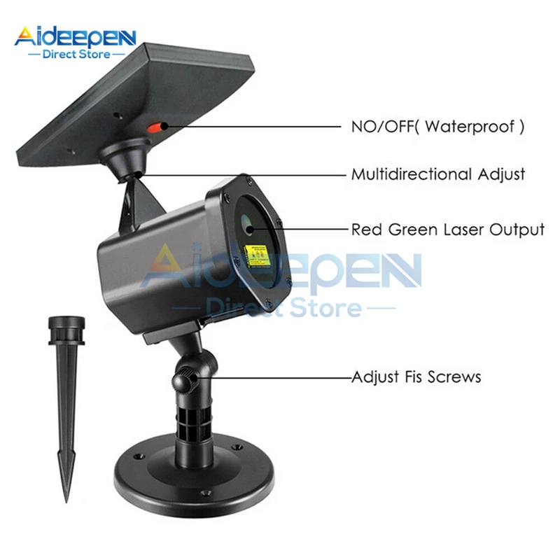 【Легко установить-лазерный Светильник поставляется с базой и длинным шипом. Вам нужно только зафиксировать шип в землю на открытом воздухе или поставить основание на при использовании в помещении.