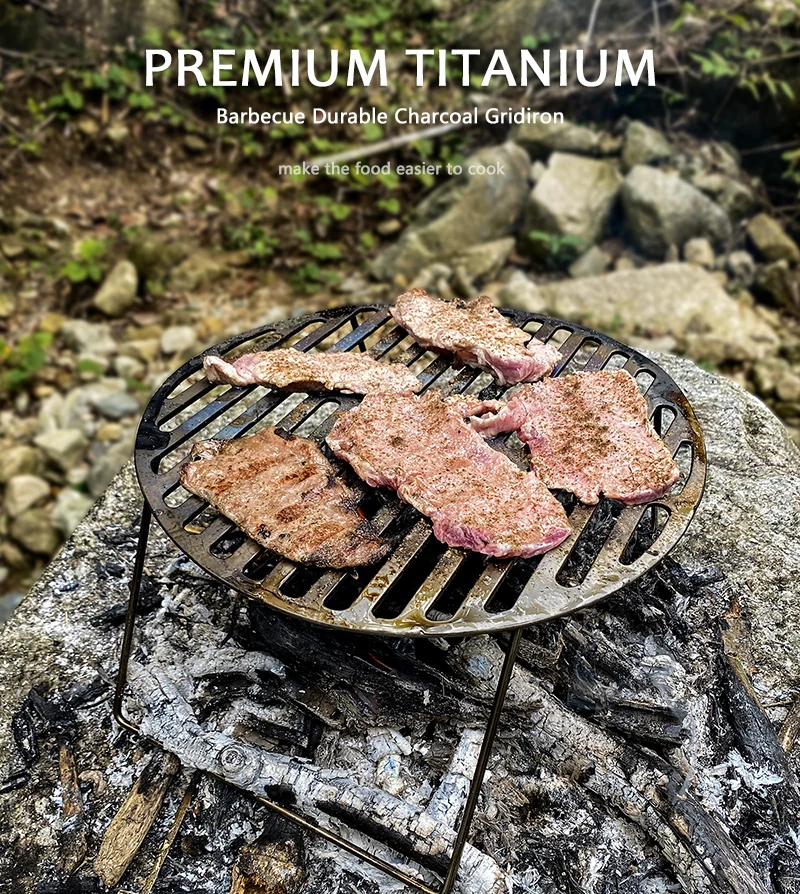 Ультралегкий титановый гриль для барбекю, сетка со складными ножками, для отдыха на открытом воздухе, кемпинга, пикника, барбекю, угольный гриль
