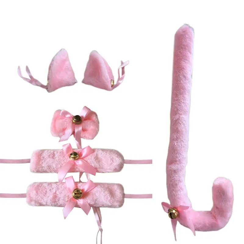 Воротник с кошачьими ушками и хвостом для косплея, перчатки с кошач...