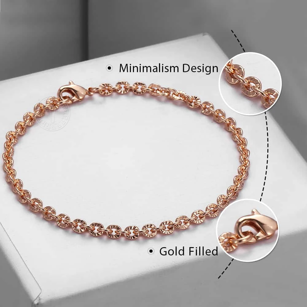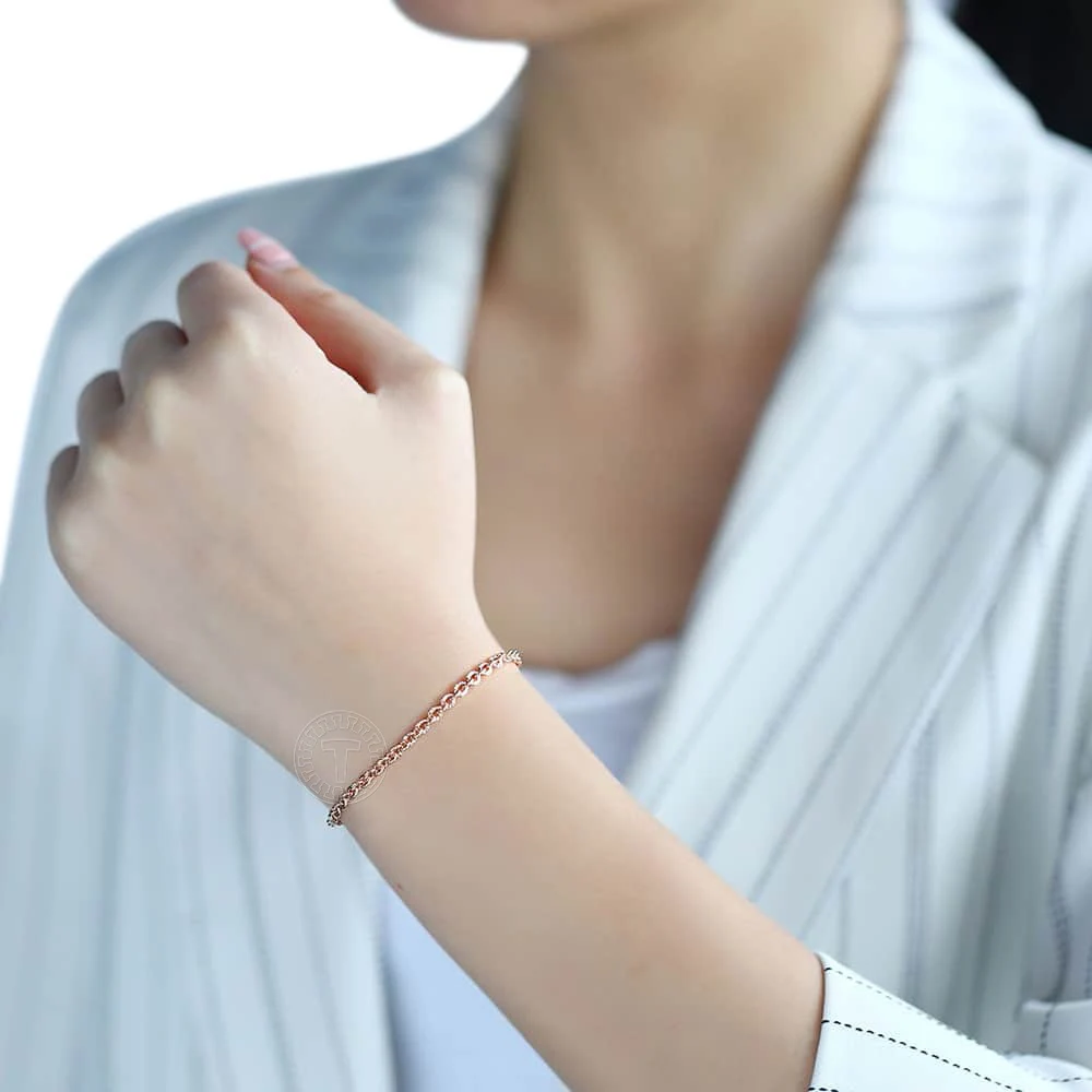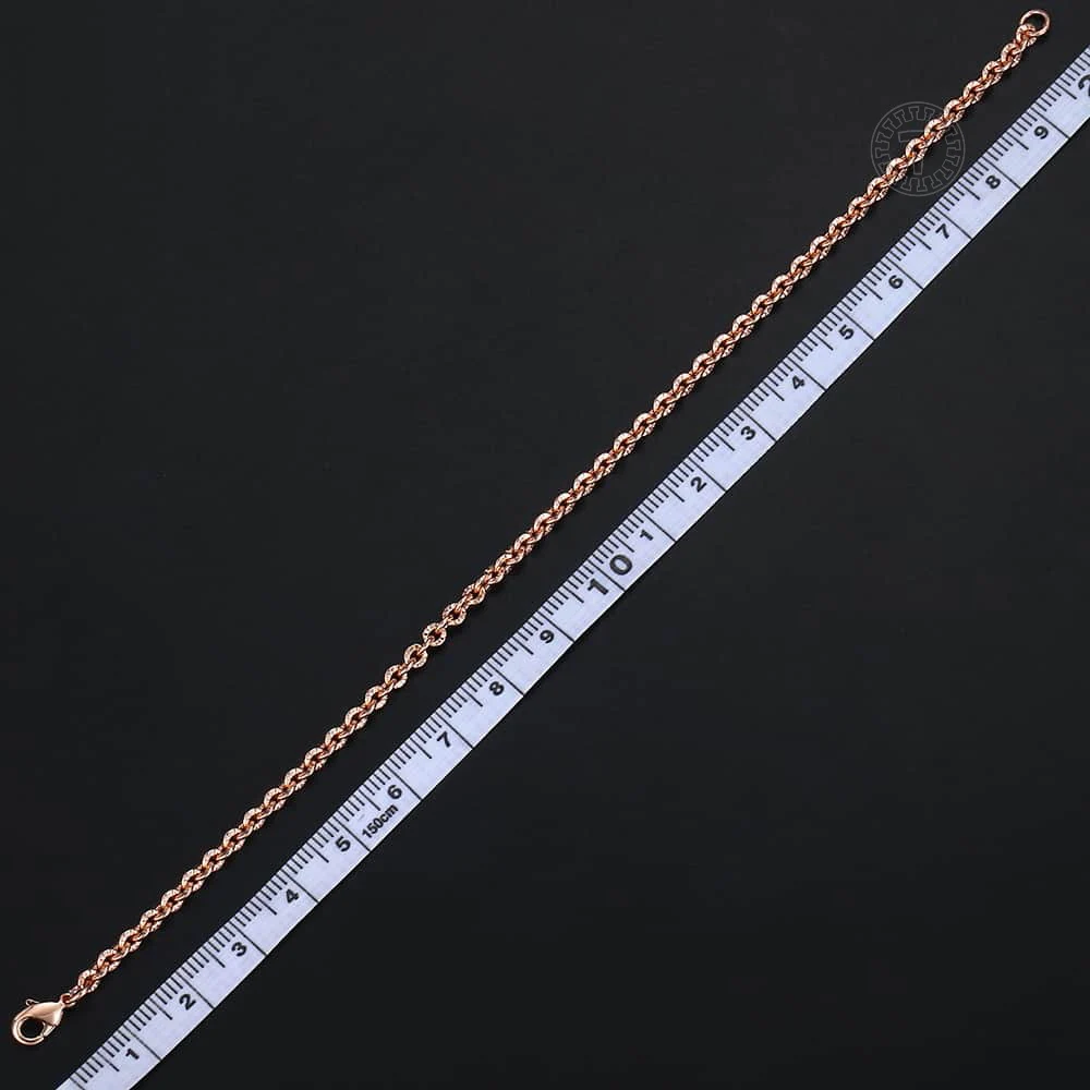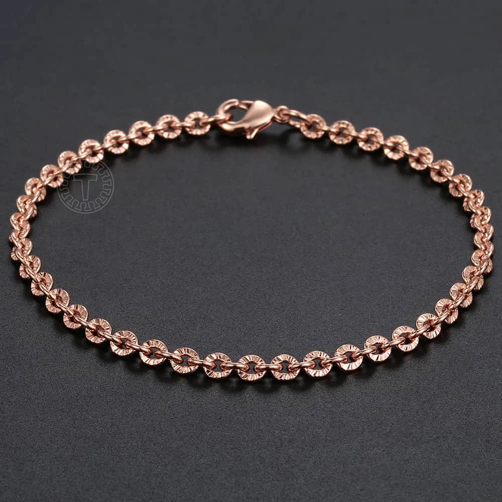 3 мм, Круглый браслет Rolo для женщин и девочек, цепочка для девушек, розовое золото, браслет 18 см, 20 см, 22 см, DGB395