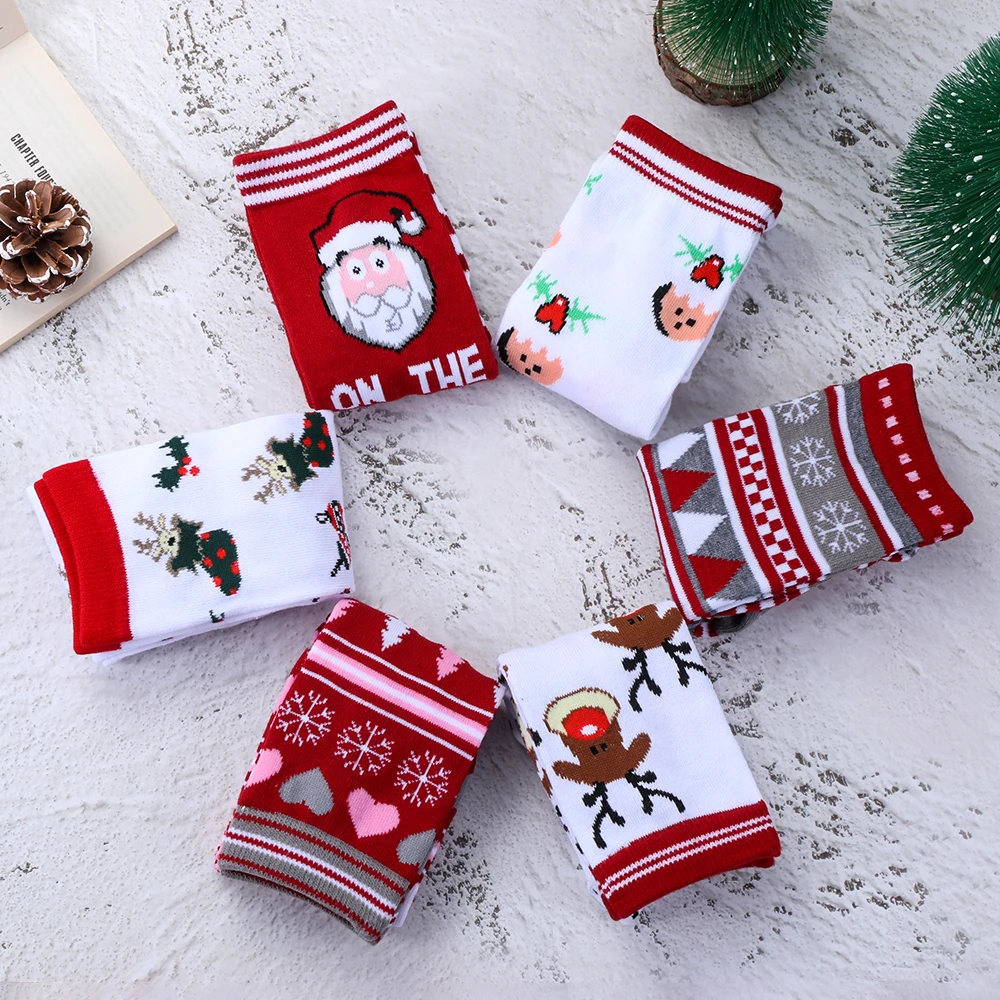 Носки унисекс рождественские, Плотные хлопковые, с изображением Санта-Клауса, для мужчин и женщин, 1 пара