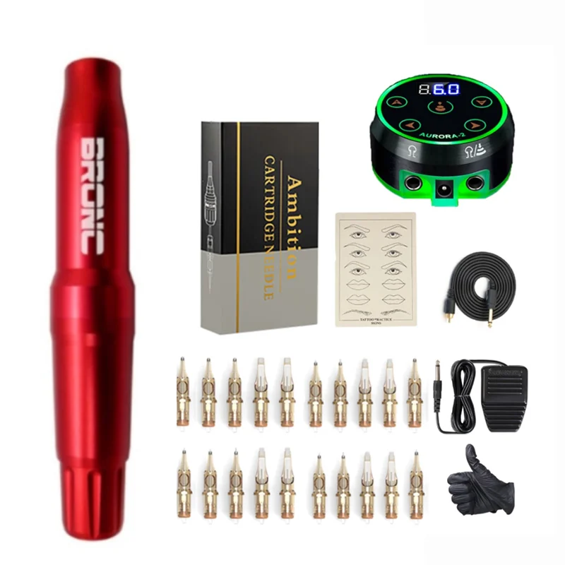 Оригинальный профессиональные Татуировка мини лазерная гравировка машины ручка BRONC-V4 Швейцарский двигатель с Aurora-2 Мощность картридж иглы Набор для перманентного