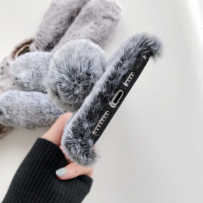 Пушистый Плюшевый чехол для телефона с кроличьими ушками для iPhone...