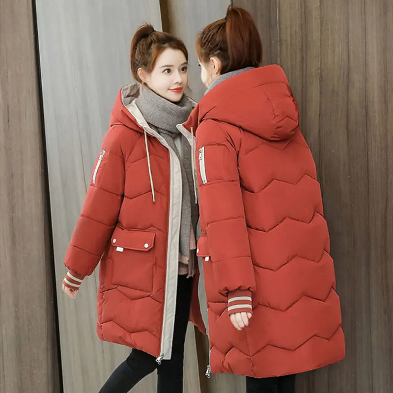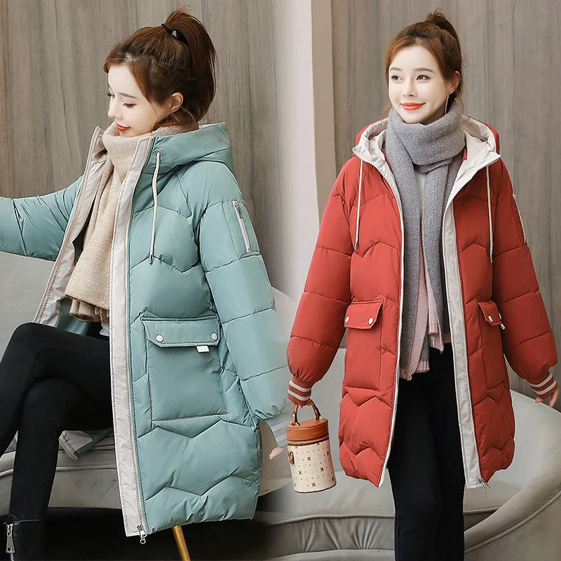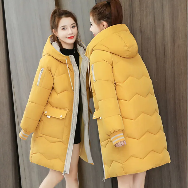 Женская зимняя длинная куртка TingYiLi, бежевая, фиолетовая, красная, зеленая, желтая, черная теплая парка с капюшоном, женские куртки
