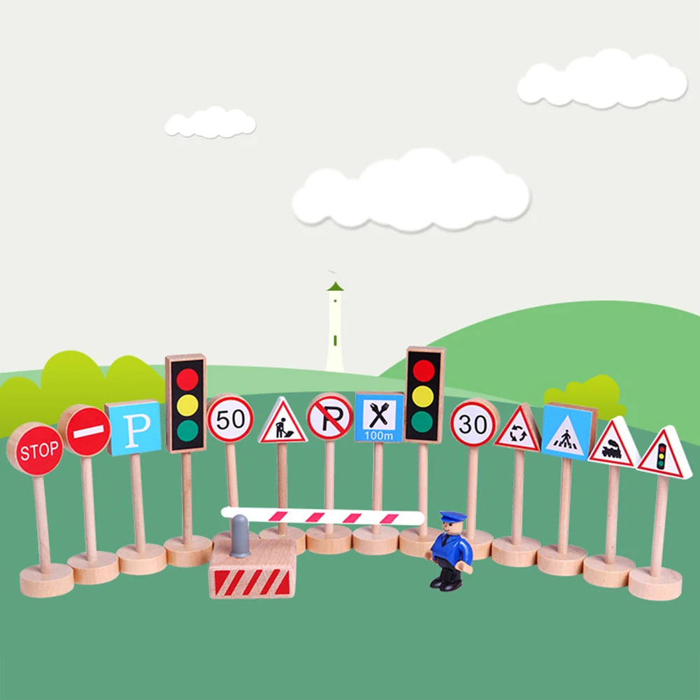 16 шт.компл. деревянные дорожные знаки модель блока для детей малыш...
