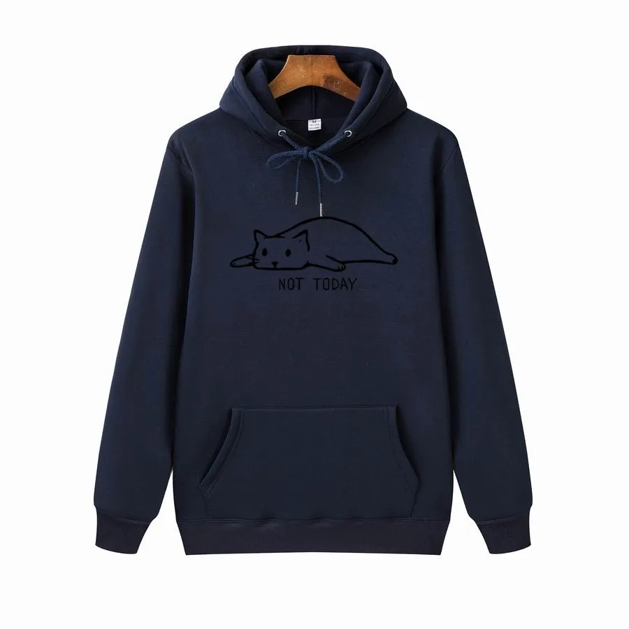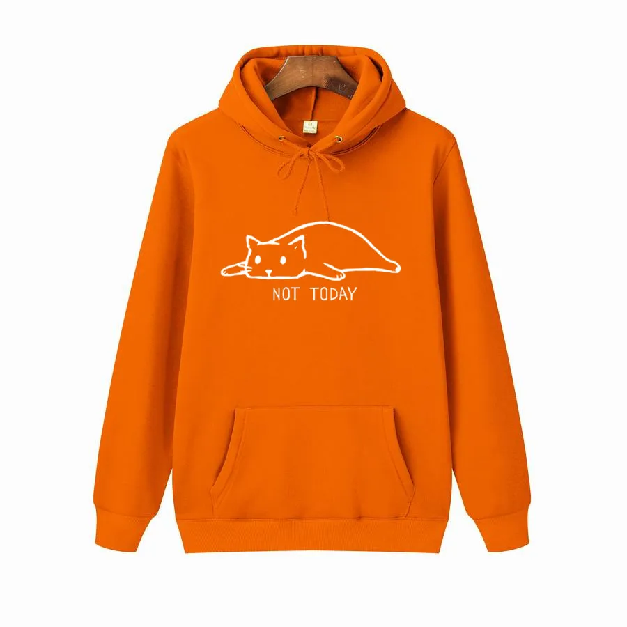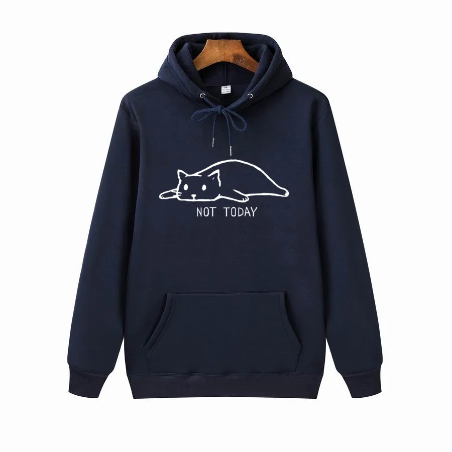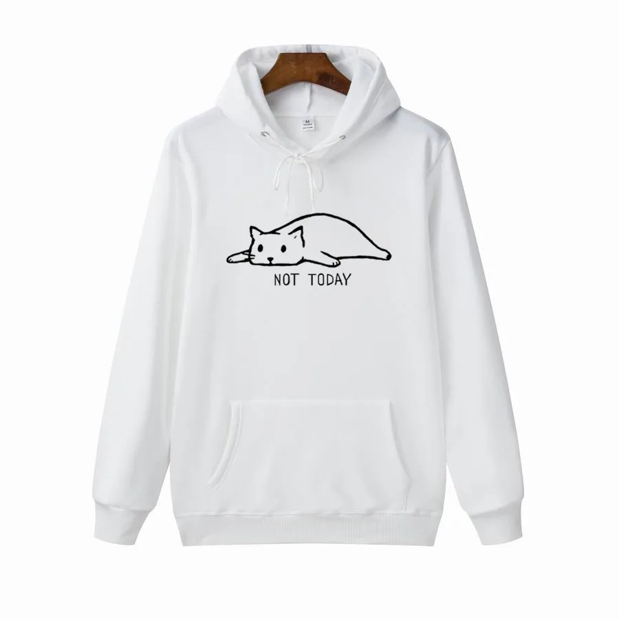 Женская и Мужская бархатная Толстовка Not Today Kawaii Cat Plus, модная повседневная толстовка с длинным рукавом, свитшот с принтом для влюбленных, одежда