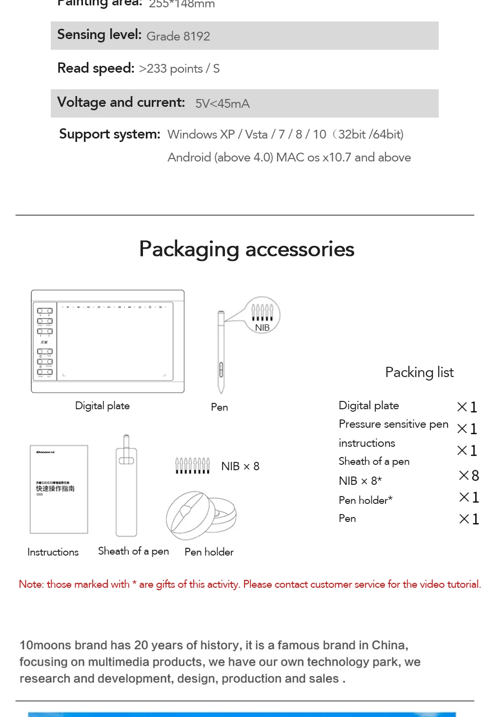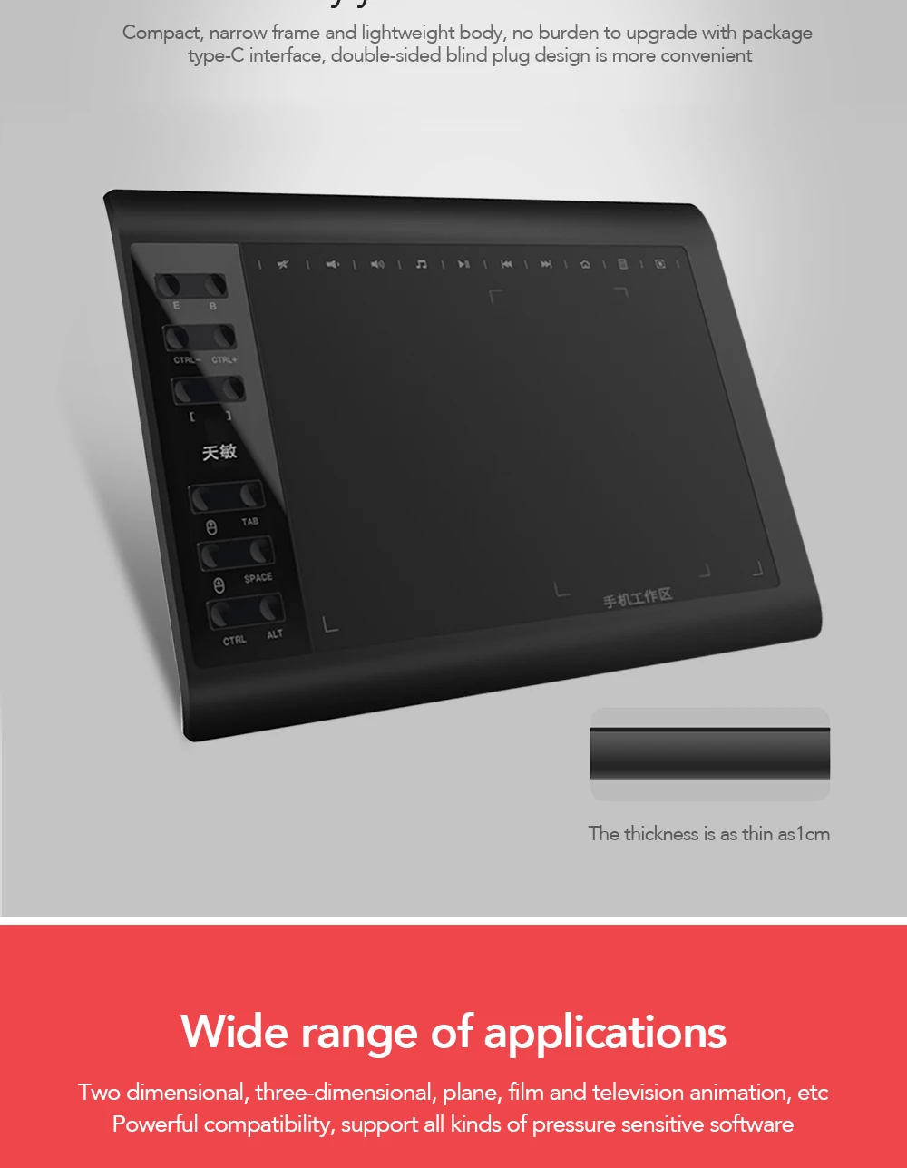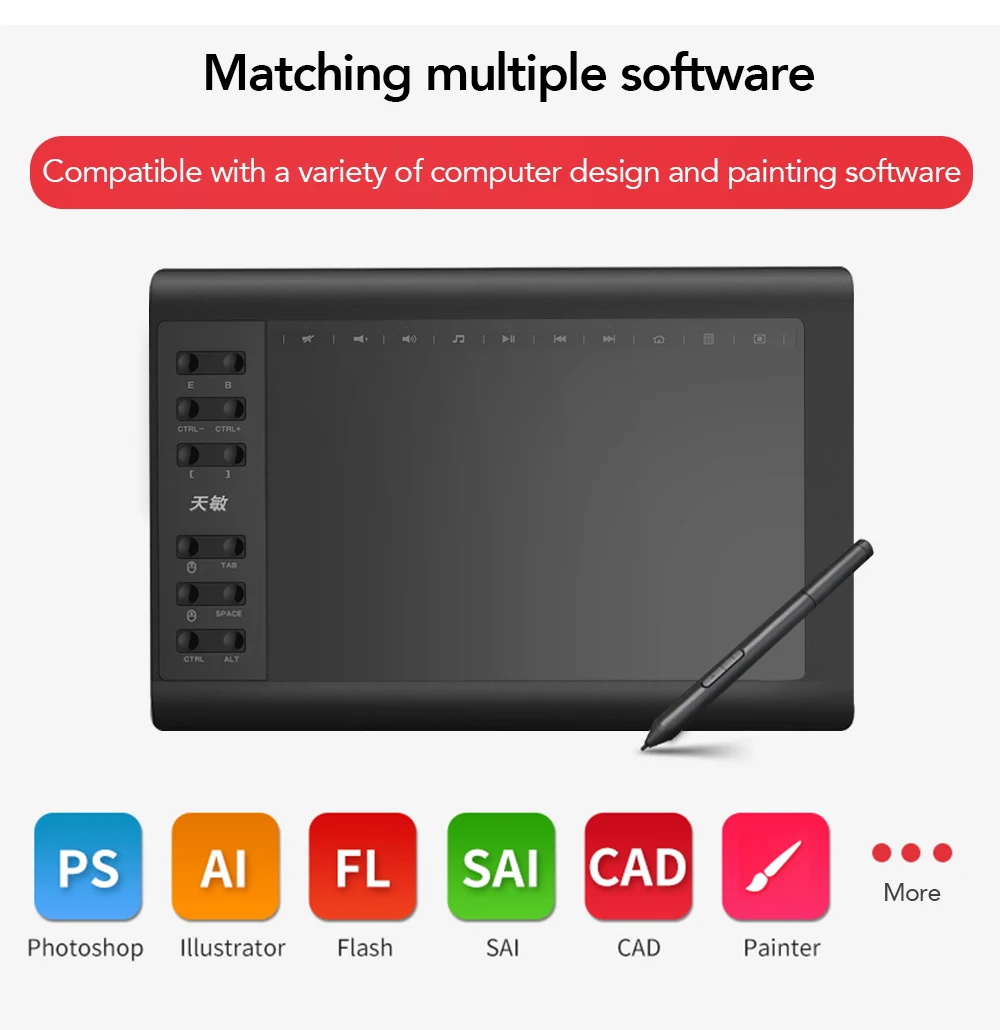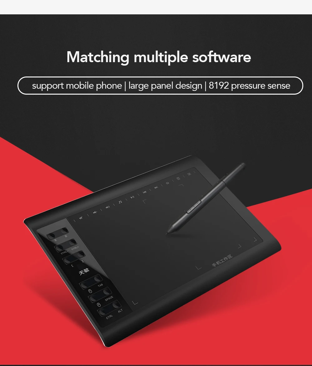 Графический планшет TISHRIC G10, 10 дюймов, цифровой планшет для рисования с ручкой 8192 уровня для рисования и игры OSU